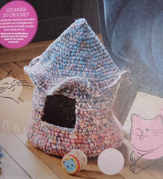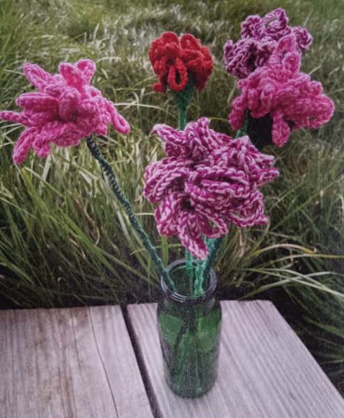 Mes chats ont la malheureuse tendance de ne pas aimer les fleurs ou un peu trop… Le plus petit des trois, les vole et se sauve avec la maison en la chassant… Alors des fleurs artificielles feront mon bonheur , ici elles sont réalisées au crochet.