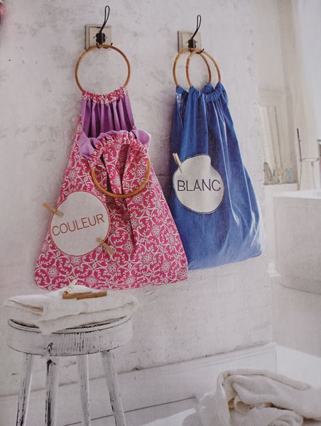 Je ne sais pas pour vous, mais que trouvent ces grands sacs très sympathiques, et pas forcément pour le linge. Leurs grandes poignées en bois leur apportent solidité.