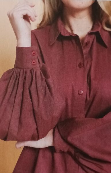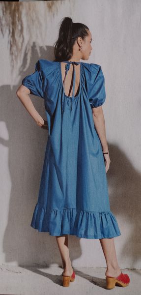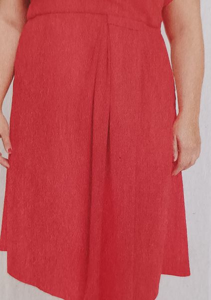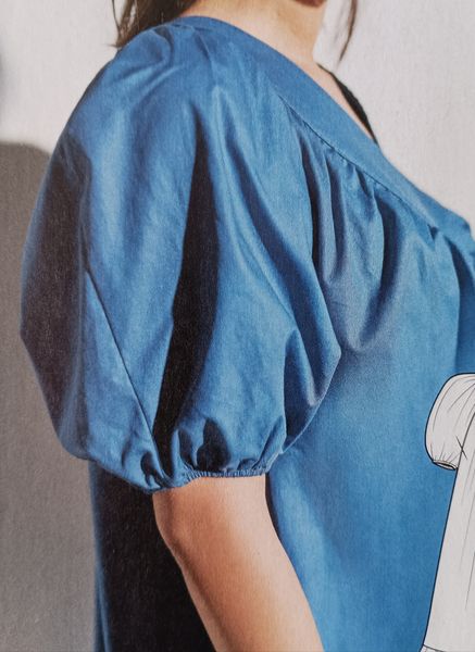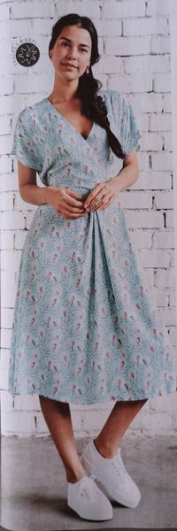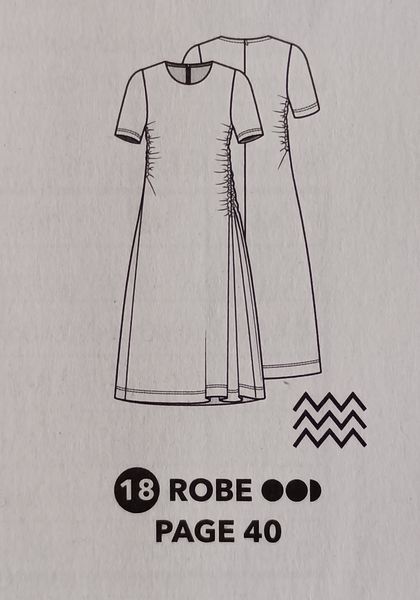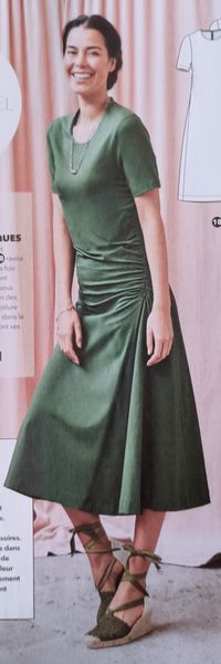 Voici ma robe préférée dans cette édition, avec un buste légèrement blousant et des petites manches kimonos. La jupe ample est garnie d’un gros plis piqué et marqué sur le haut, il structure celle-ci et son volume, tout en allongeant la silhouette.