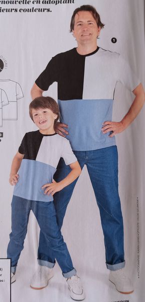 Coup de cœur pour un basique pour homme revisité, c’est un t-shirt à col rond et manches courtes. Il comporte des découpes permettant de jouer avec les couleurs ou les imprimés. J’aime beaucoup. Vous avez aussi la version pour enfant à télécharger Sur la page « modèles du mois » chez Fait Main . La robe du mois dernier est toujours en téléchargement, profitez en vite !