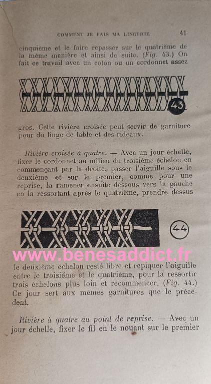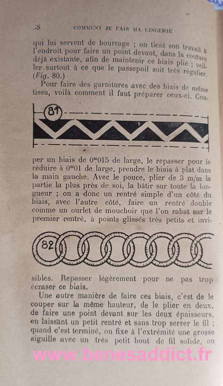 Bonjour, bonjour, aujourd’hui, j’apparais dans votre fil, un peu plus tard que prévu, mais je suis fidèle au poste. Comme chaque lundi, je partage avec vous des ouvrages anciens. Aujourd’hui, il s’agit un livre au format poche, intitulé « Je couds Ma Lingerie ». Il date de 1946, nous sommes à la sortie de la guerre… Les femmes cousaient l’essentiel de la garde-robe et forcément les sous-vêtements en faisaient partie. Donc, vous retrouverez dans ce recueil, toutes les astuces de l’époque pour la réalisation de superbes pièces, avec tous les points à la main. Il y en a même que je ne connaissais pas.