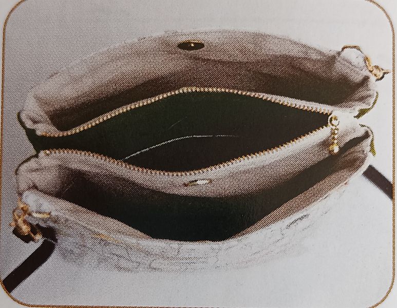 Voici un joli sac à main avec trois poches dont une qui se ferme à l’aide d’un zip.