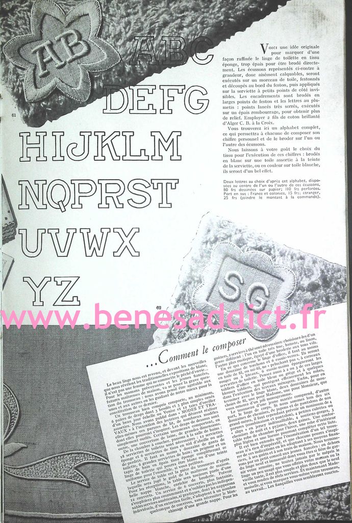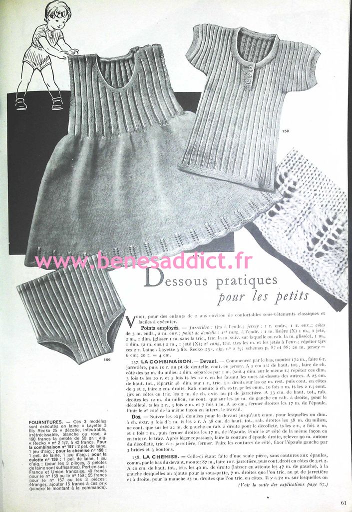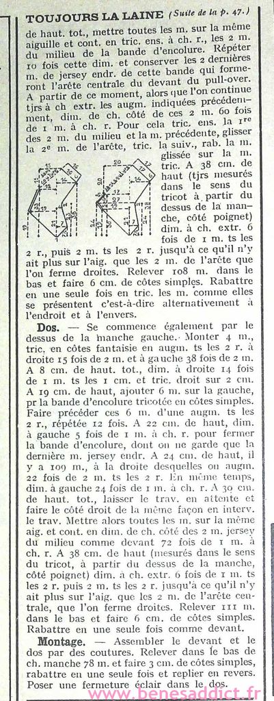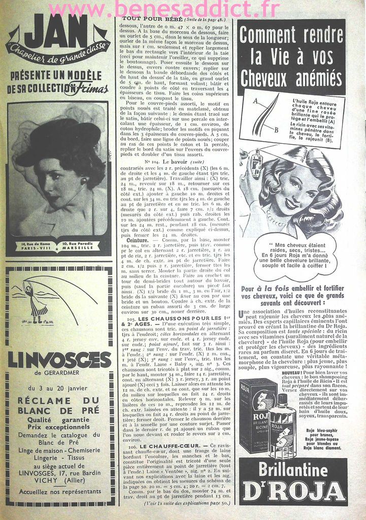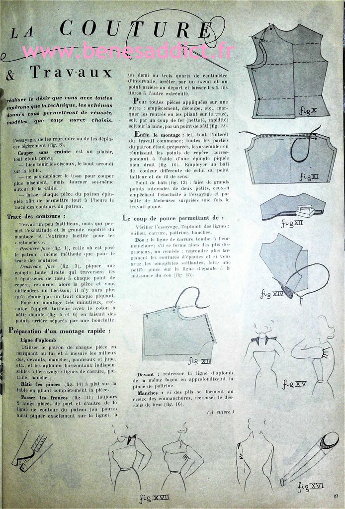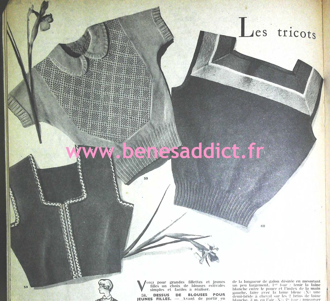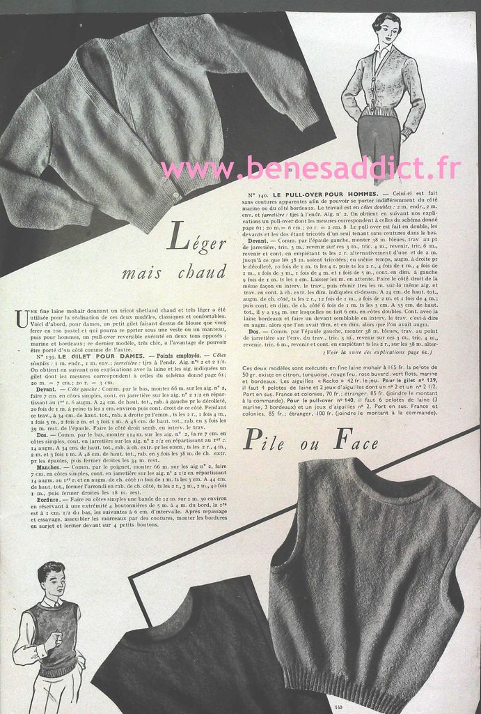 Bonjour, bonjour ! Aujourd’hui, je partage avec vous des morceaux « Vintage » datant des années 40 et 50. Pourquoi des morceaux ? Tout simplement parce que j’ai récupéré mon ordinateur en pleine forme et fait du ménage dessus . J’ai retrouvé un dossier, et même plusieurs que je ne crois pas avoir partagé avec vous. Vous trouverez donc de la couture, mais aussi du tricot tout comme du crochet ! Ce sont encore et toujours d’élégants modèles intemporels. Vous trouverez aussi des leçons de couture, et même un alphabet à broder.