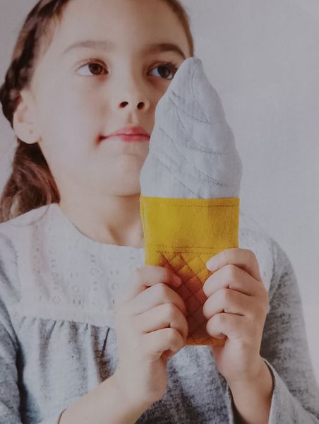 N’est elle pas apetissantabcette glace à l’italienne. Il s’agit bien entendu d’une troisième avec fermeture à glissière. Les surpiqûres simulent parfaitement, la glace ou le cornet.