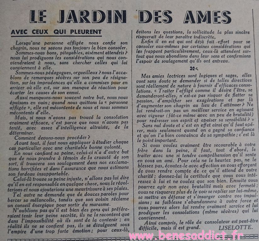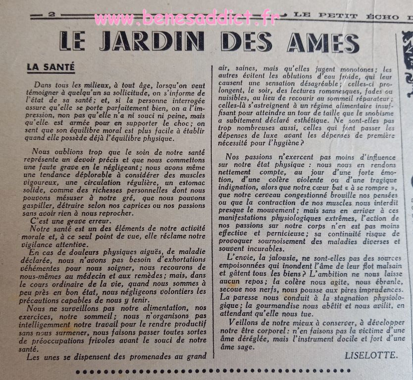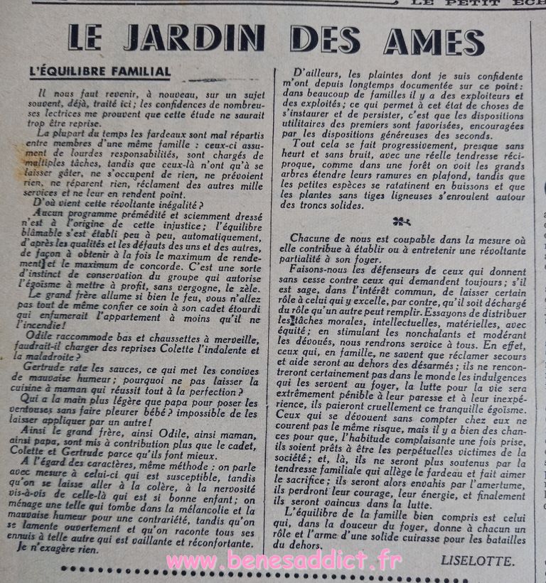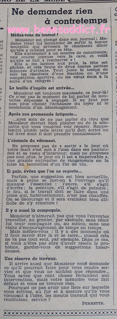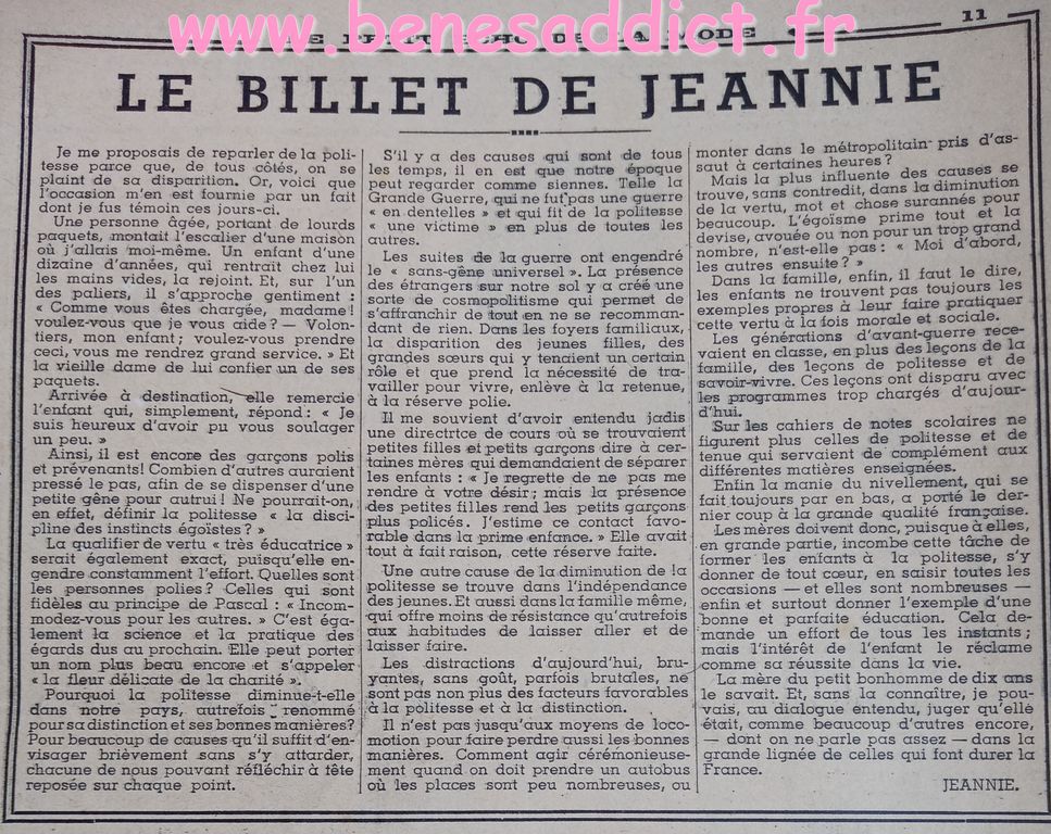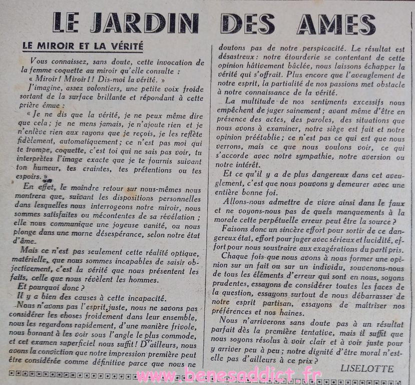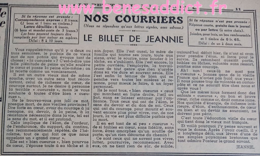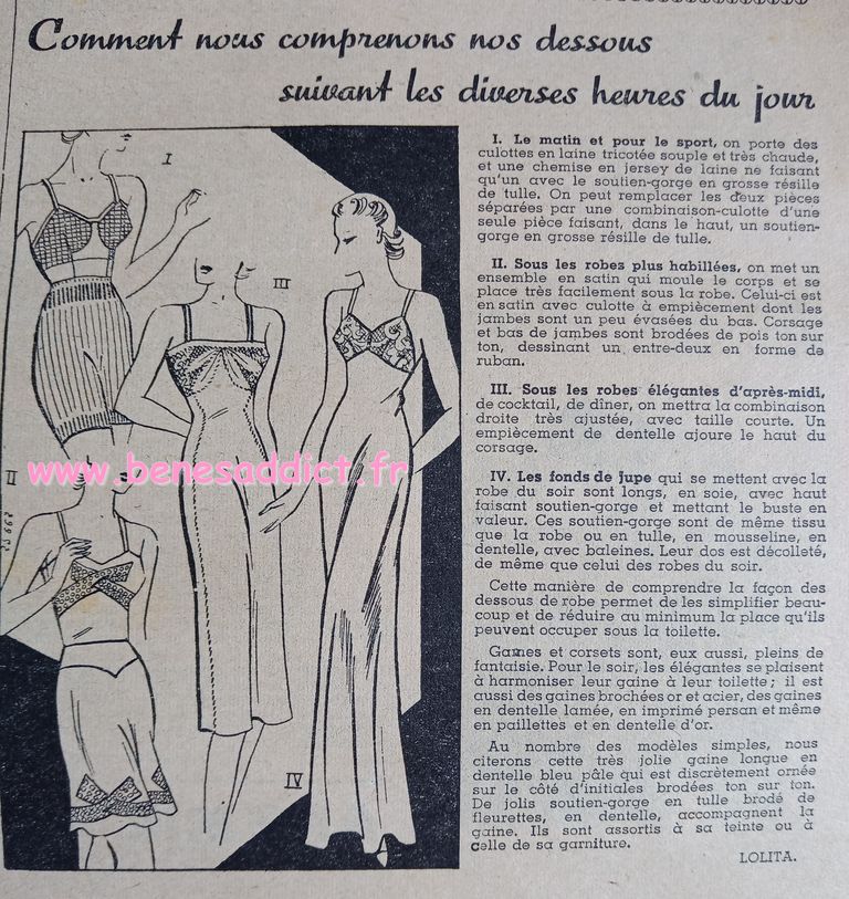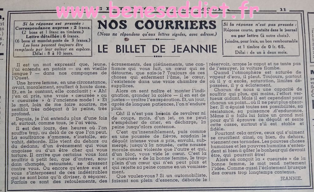 Bien sûr, vous retrouverez des réclames de toutes sortes, avec une prédilection sur la mode, mais aussi la femme et le regard posé sur elle. Pas toujours facile d’être une femme aujourd’hui, mais dans les années avant-guerre, je ne crois pas que c’était mieux. Les recettes de cuisine sont simples, car il y avait peu de moyens. Chaque achat était murement réfléchi, et on recyclait, mais aussi transformait