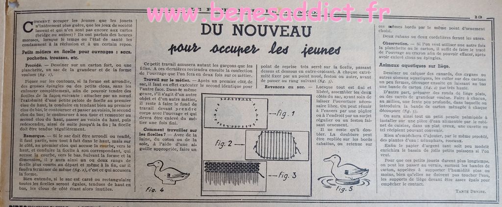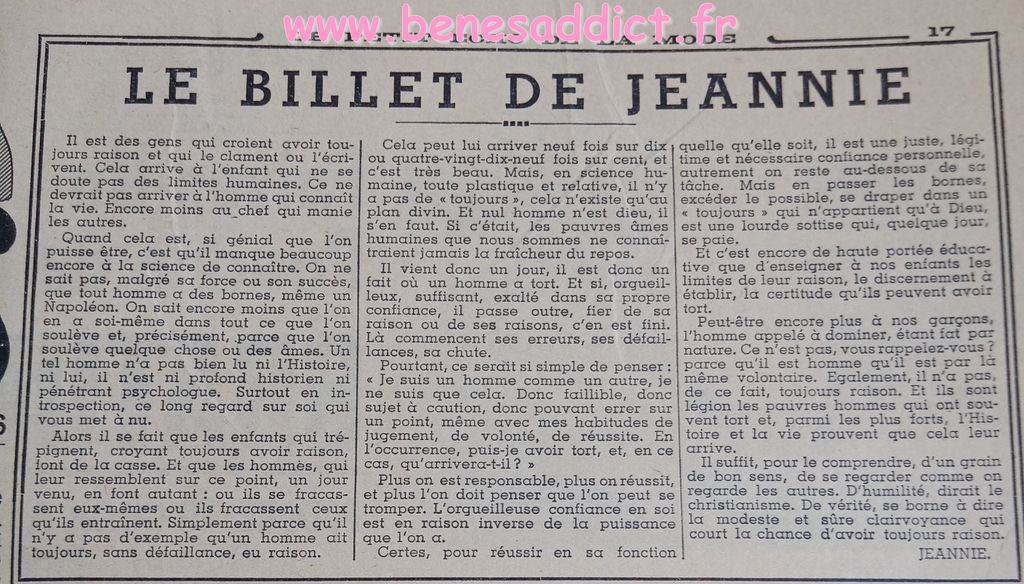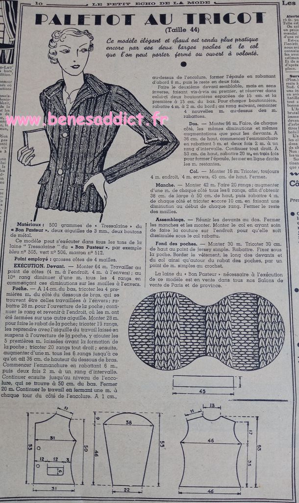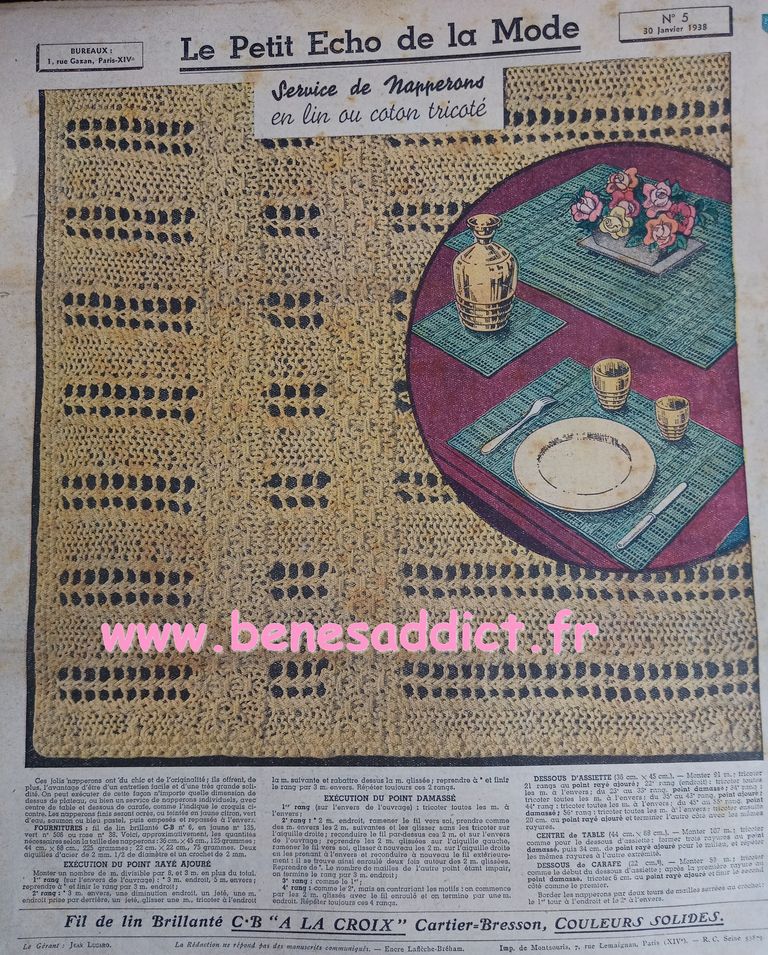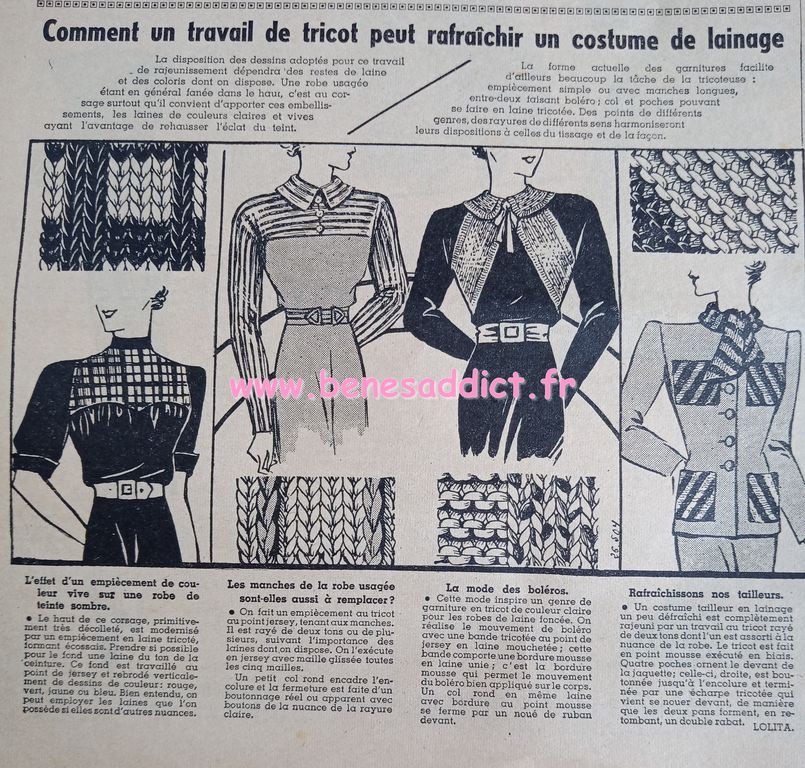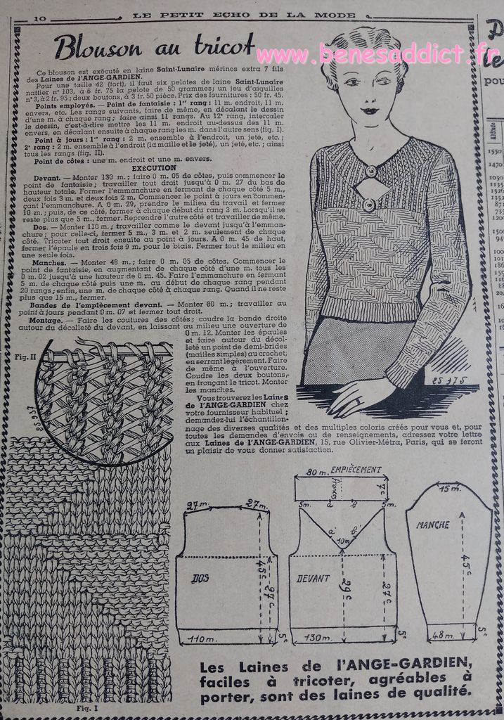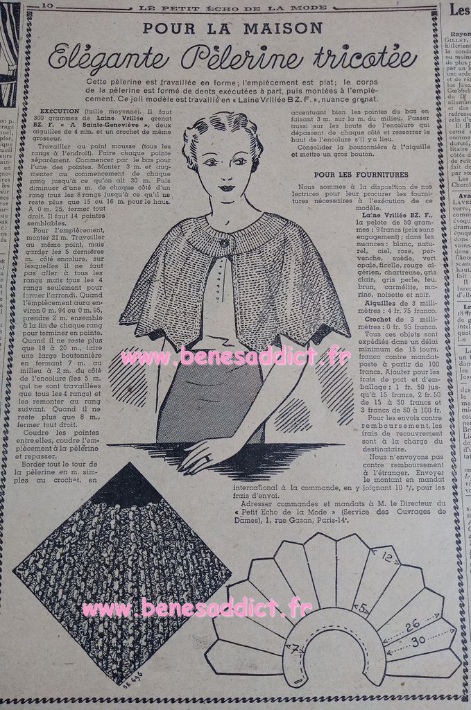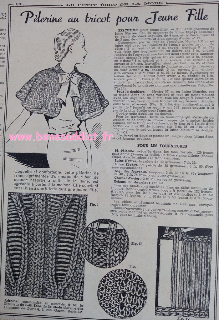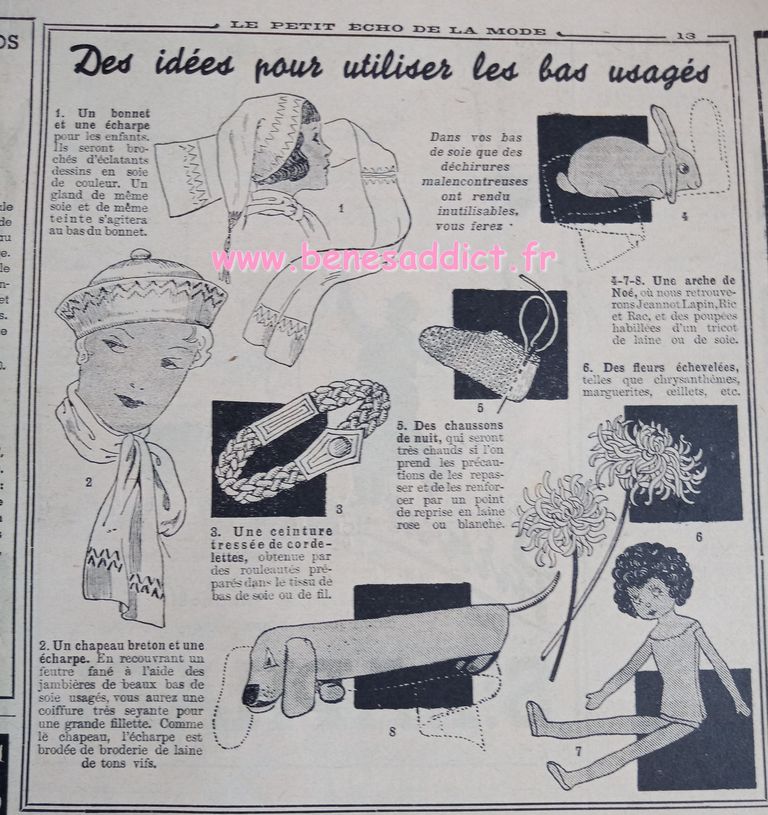 Bonjour les créatives, aujourd’hui, je partage avec vous des extraits de revues Du Petit Écho de de La mode 1938 pour les amoureux du vintage ! Oui, je passe facilement d’une décennie à l’autre, d’une semaine à l’autre ? Mais, l’essence créatrice est toujours là, en effet, j’ai scanné pour vous, du tricot, mais aussi de la couture, tout comme du crochet, mais encore des recettes de cuisine, et les leçons de morales et de vie de cette année-là.