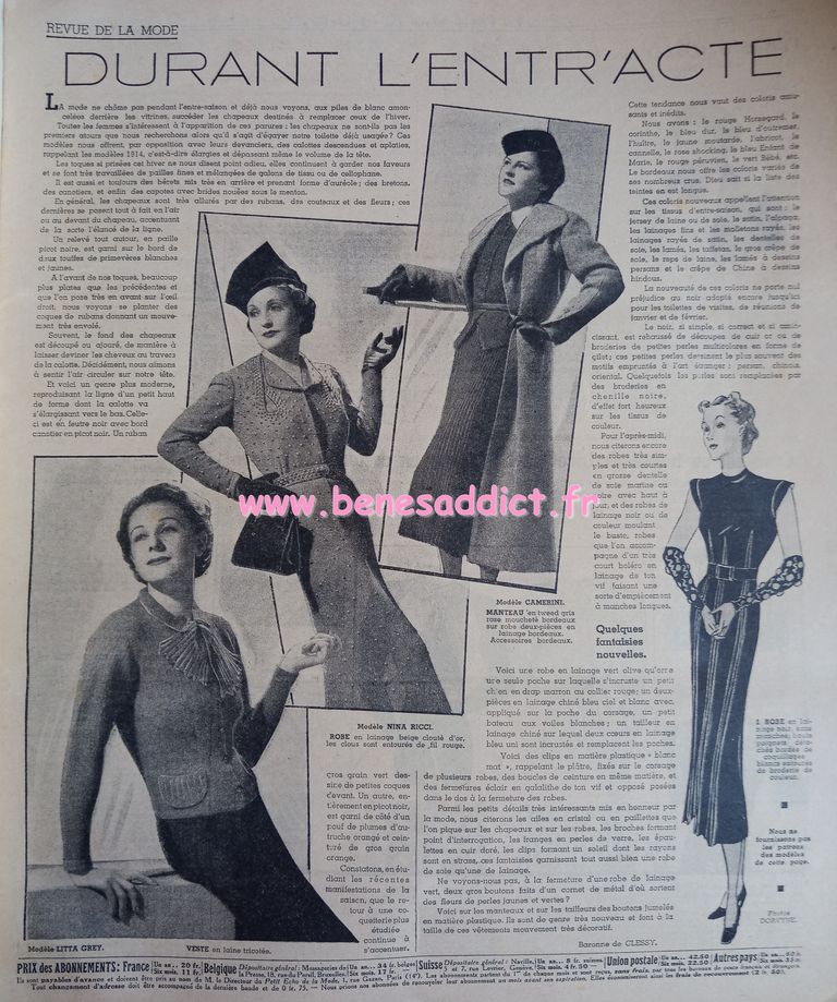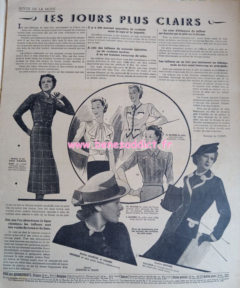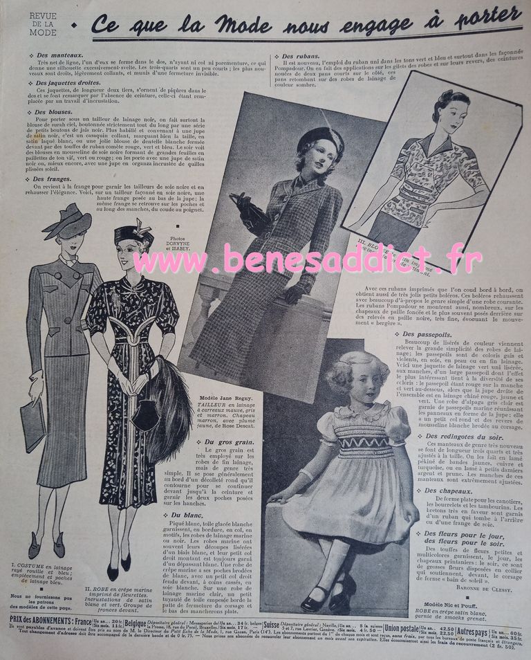 Mode 1938 pour Amoureux du Vintage, Couture et loisirs Créatifs