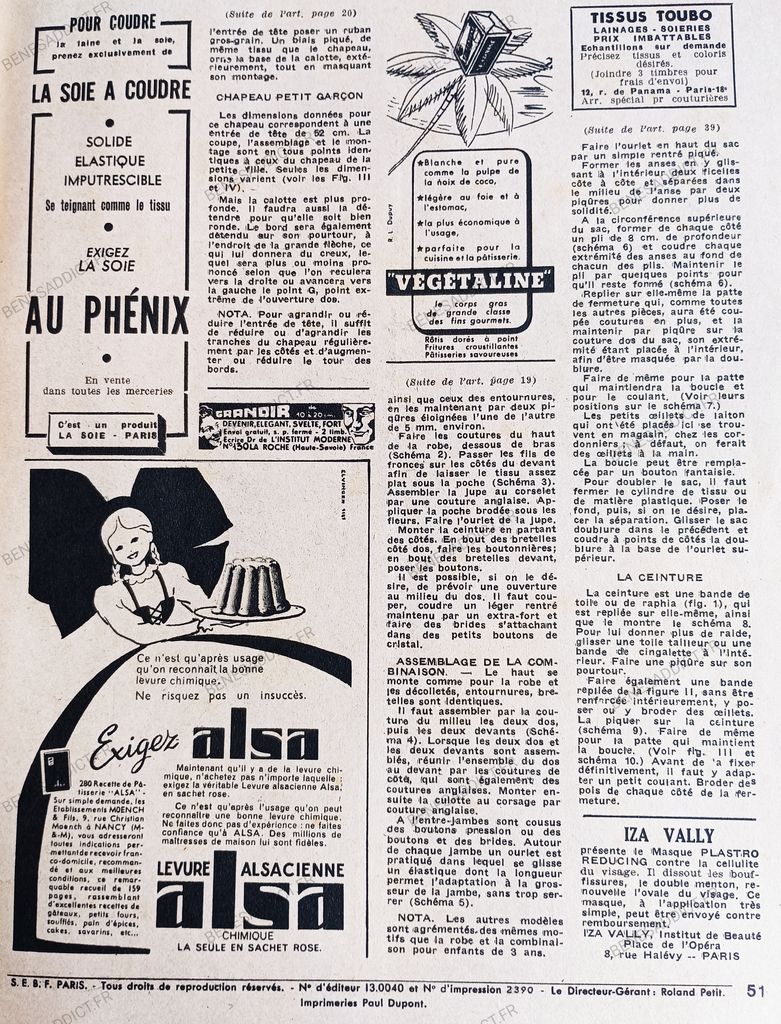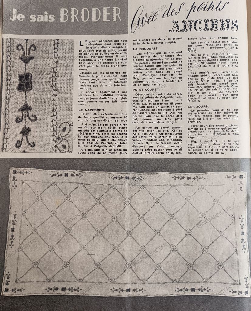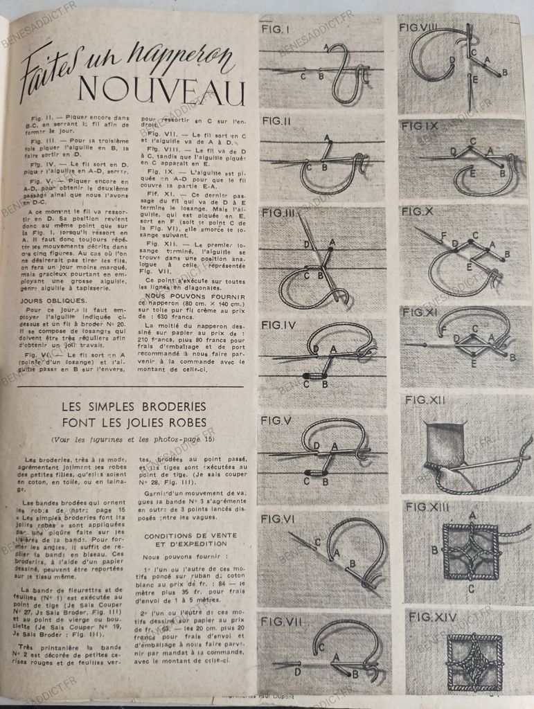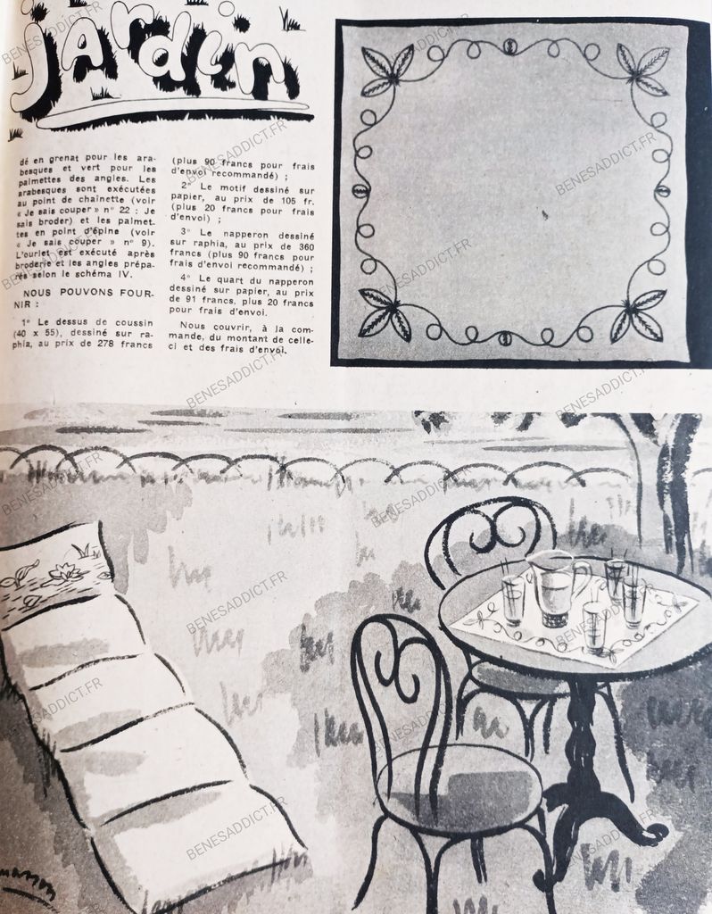 Il s’agit d’un mensuel compliqué à trouver à cette époque, et aujourd’hui presque introuvable en brocante ou à des prix inabordables. Effectivement, contrairement aux autres revues telles que Petit Écho de la Mode, tout comme Mon Ouvrage avec nombreux Patrons, Crochet, Tricot, Broderie, Déco, Bricolage… Le prix était élevé pour la mère de famille. Donc les parutions étaient en plus petit nombre et dédiées à un public aisé ou habitué à un certain standing. Cependant, la revue est formidable, car elle aborde beaucoup de sujet :