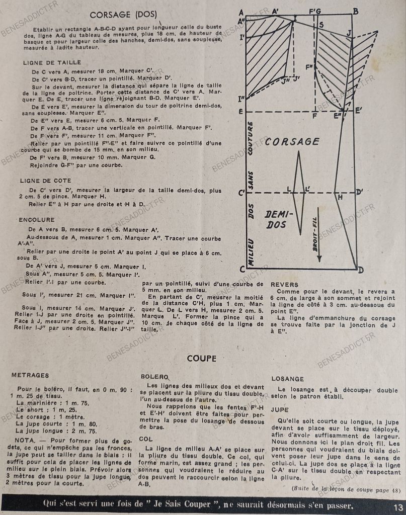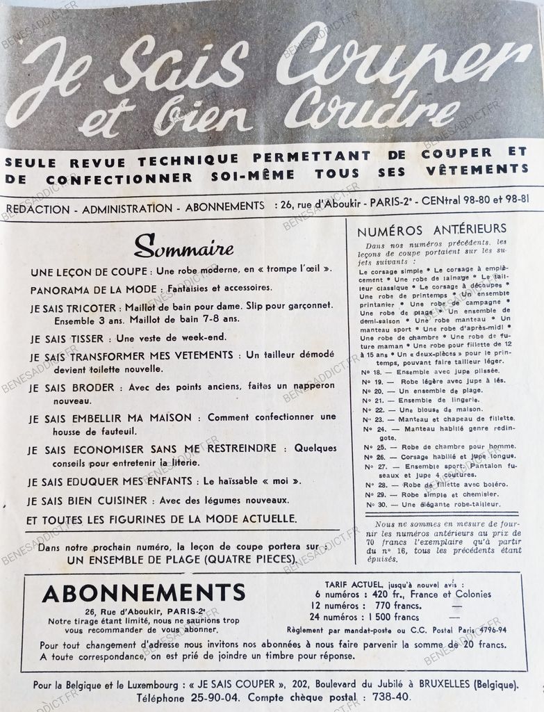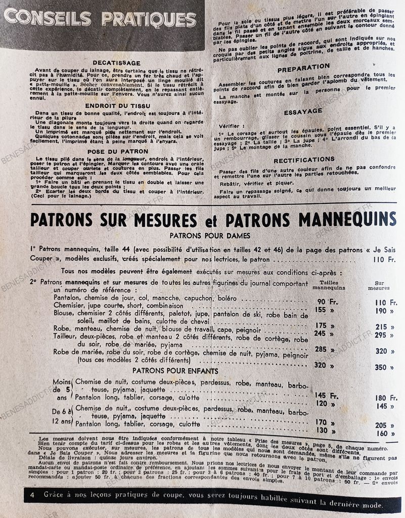 Bonjour les amoureux du Vintage, aujourd’hui, nous partons en 1949 découvrir l’art de la coupe et des patrons sur mesures. Avec plusieurs numéros de la revue « Je Sais Couper » de cette année-là.