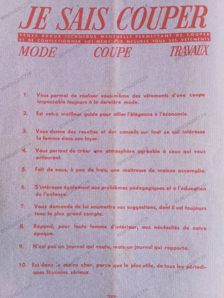 Rappelez-vous, je vous ai offert les 50 premiers numéros de la revue « Je sais Couper ». La seule revue technique dans les années 50, offrant de véritables leçons de coupe.