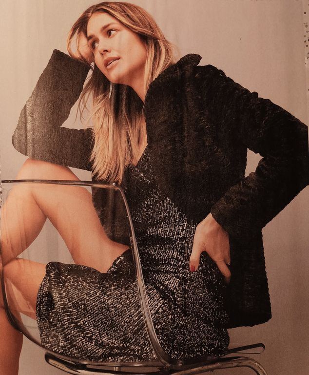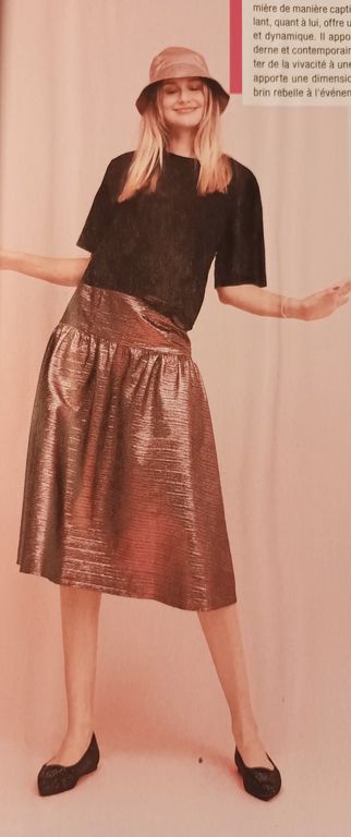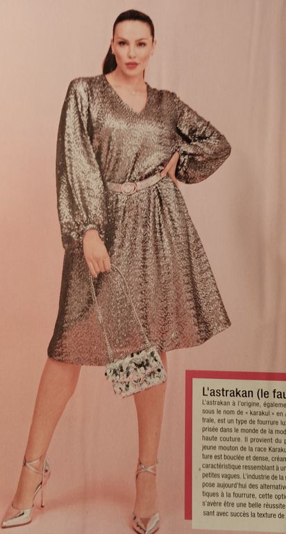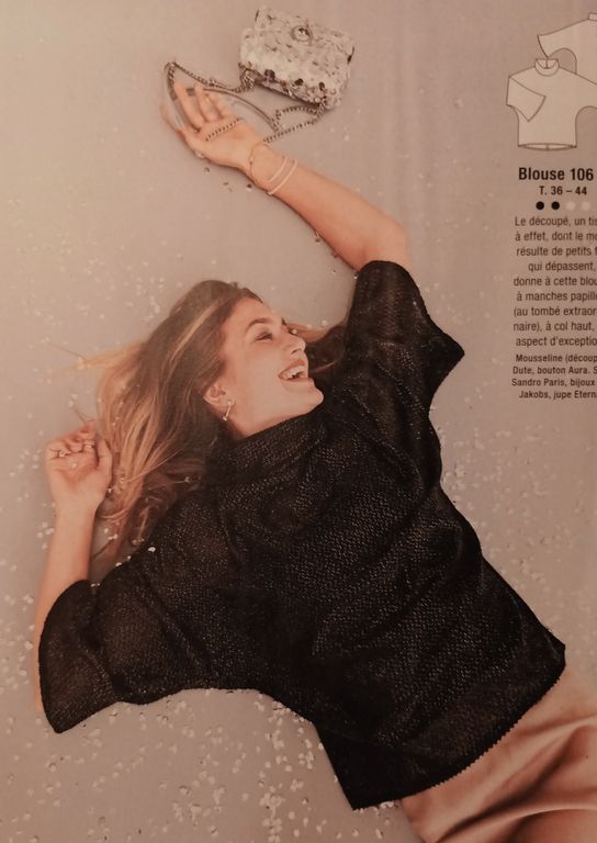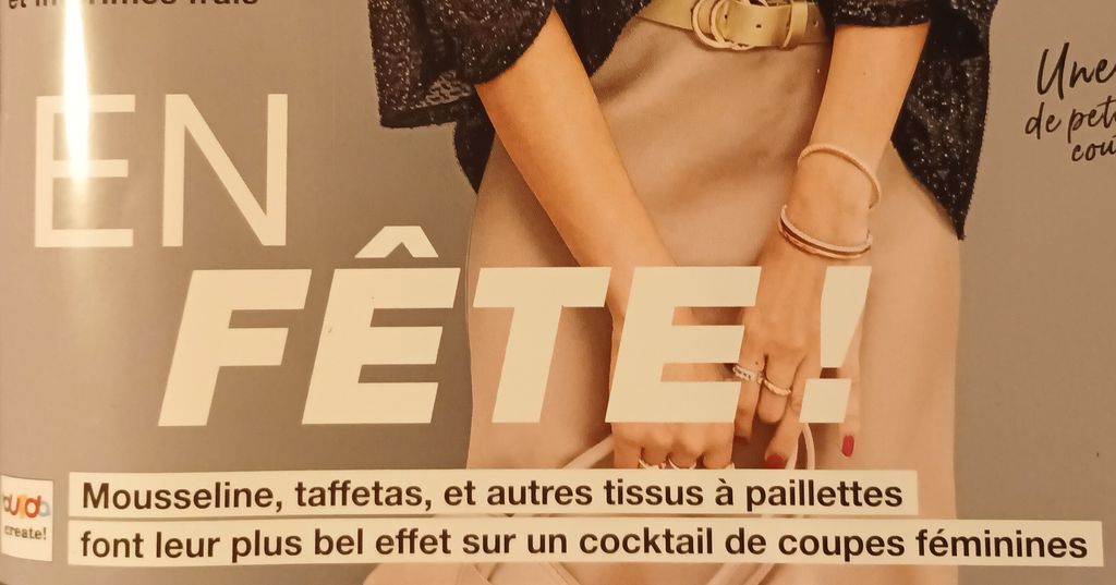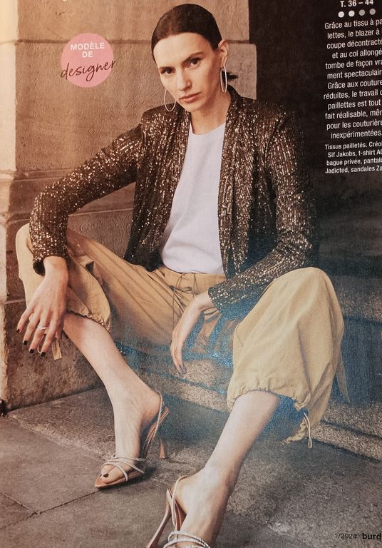 J’adore les paillettes, et je n’attends pas les fêtes pour en porter ! Devinez quoi, elles sont en une de ce numéro avec un blazer sublimissime réalisé avec des sequins ! Personnellement les tissus à sequins sont ma bête noire en couture. J’ai failli y laisser ma machine à coudre la seule fois où j’ai cousu ce genre de tissu.