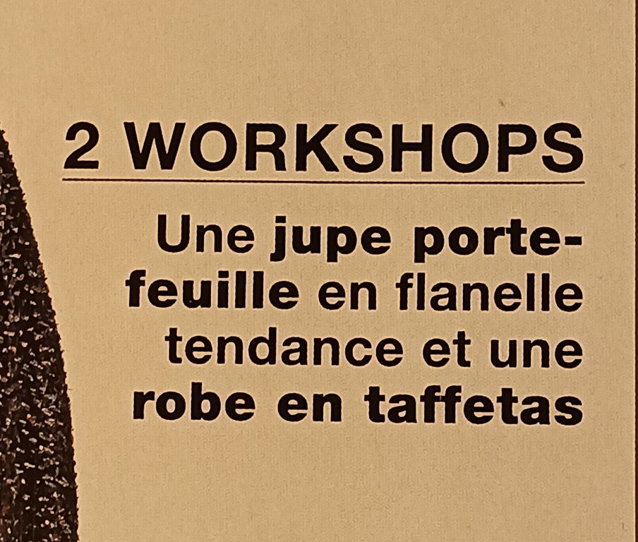 Comme dans toutes les éditions de Burda Style, deux « workshops » ou tutoriels très complets détaillée étape par étapes. Cela concerne, une robe en taffetas et une jupe portefeuille en flanelle. J’ai du mal à voir ce genre de matières autrement qu’en draps ou pyjamas.