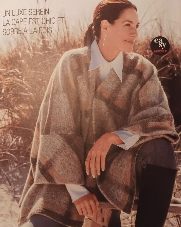 Je suis toujours fan de ce genre de cape, mais à la condition qu’elle reste en place. Comme celle-ci grâce à ses petites manches. Pour une version toute douce, choisissez les plaids de chez Action, moins chers que d’acheter le tissu.