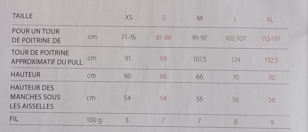 Pullover coloré de la taille s (poitrine 81/86 cm au L (102/107 cm)