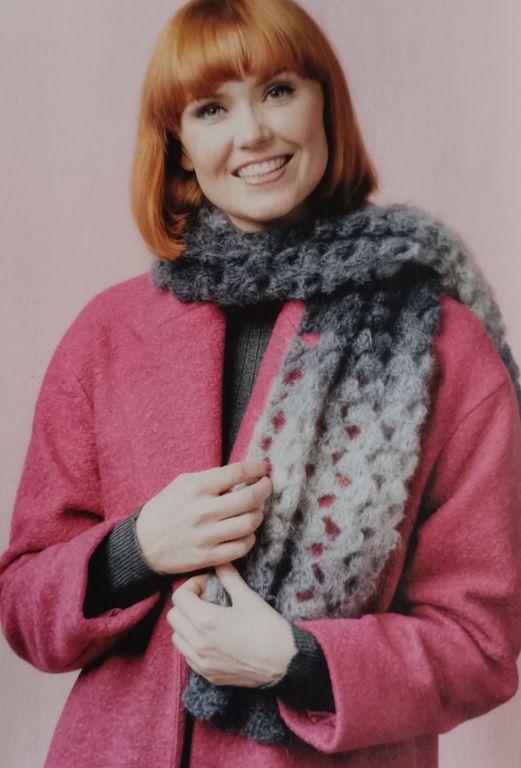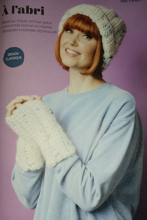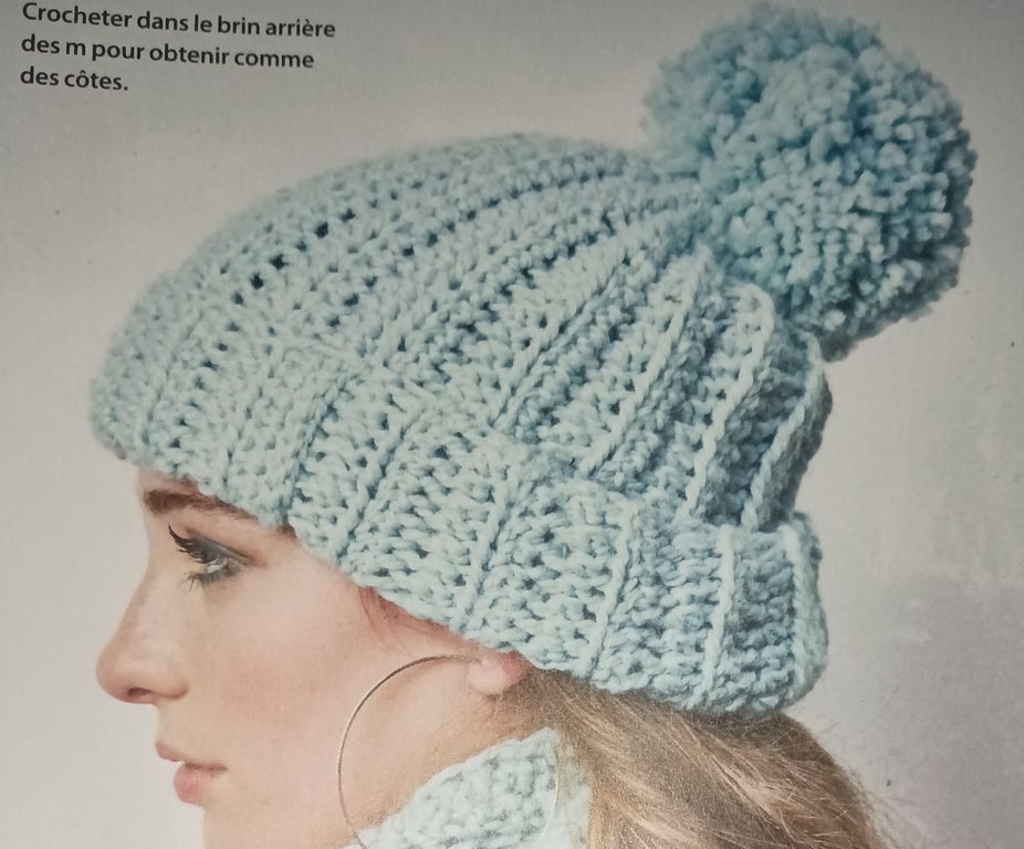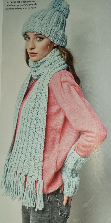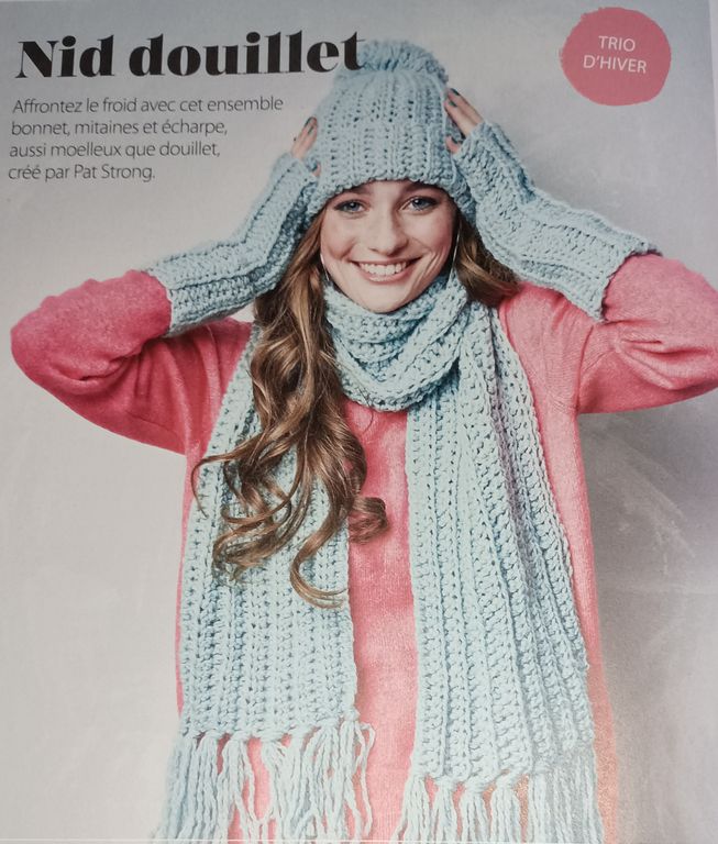 Je deviens frileuse. Il m’arrive à la maison de porter un bonnet et j’ai toujours une écharpe. Donc forcement ce trio se trouve dans mes coups de cœur. Ils sont réalisés à l’aide d’une grosse laine ce qui donne des modèles rapides à crocheter.