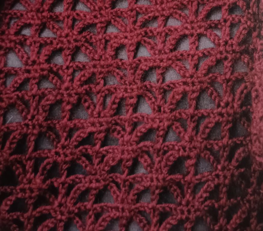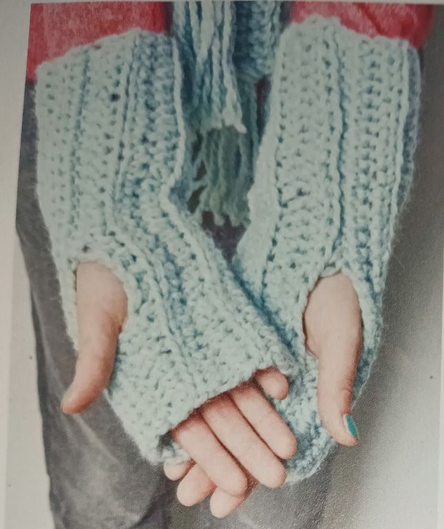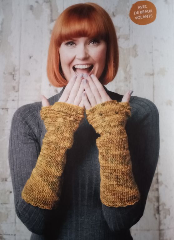 Dernier de ma liste, mon choix s’est porté sur ces longues mitaines avec ses rangés de mini volants.