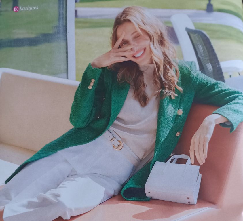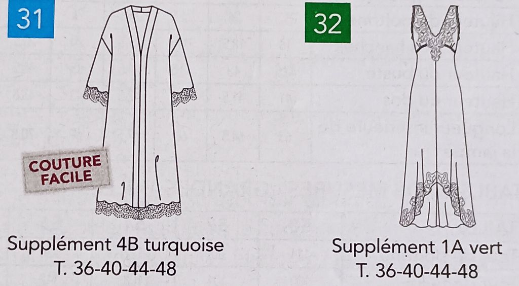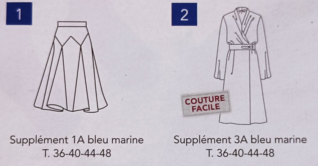 Pour moi ce macaron est trompeur ou induit en erreur. On pourrait comprendre qu’il y a 120 patrons présents dans la revue. Oui, mais non, c’est une totalité de 120 patrons. Chaque modèle en grandes tailles étant présenté en trois tailles, les autres quatre.