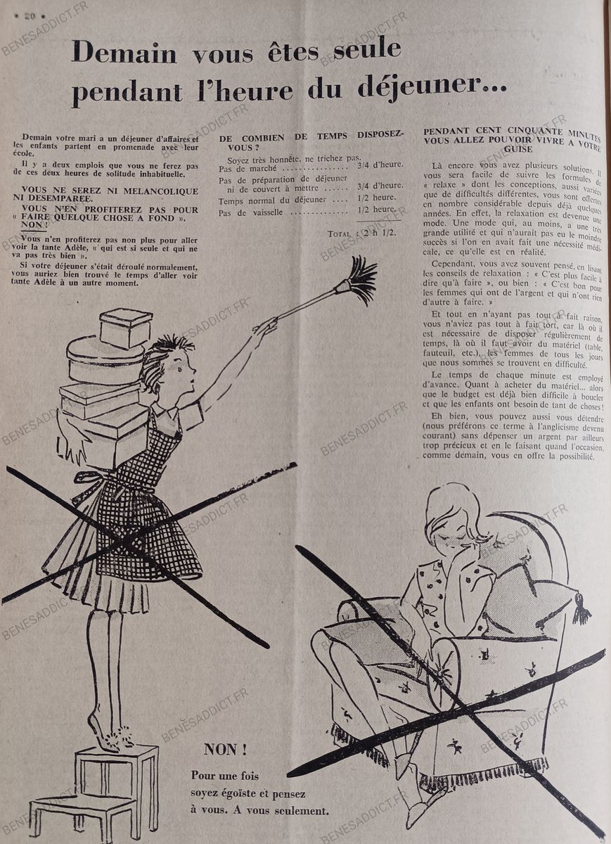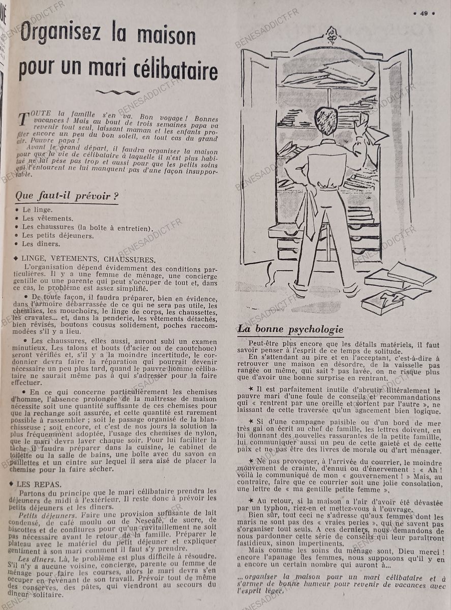 Pour ce dernier, il s’agit de réaliser une paire de chaussures ! J’aime aussi les « conseils » pour les mères de familles qui partent en vacances sans leur mari. Elle s devaient veiller à ce que le père de leurs enfants ne soit pas perdu.