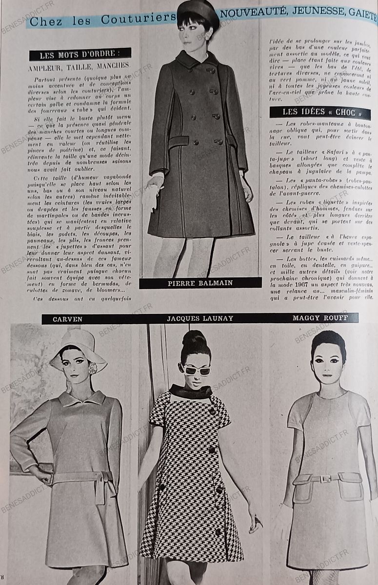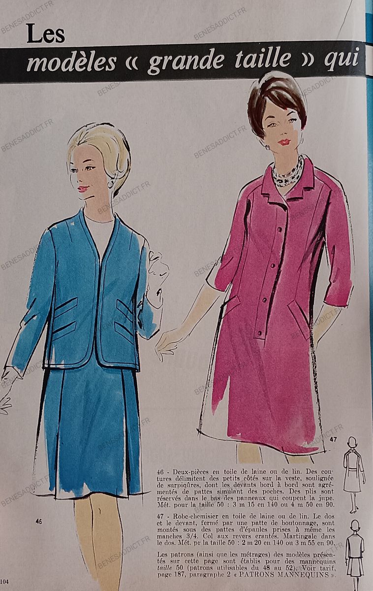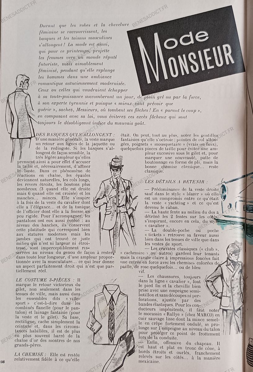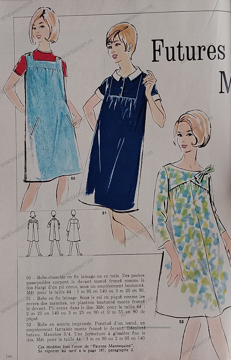 La mode de cette décennie est réellement intemporelle, les vêtements seraient toujours tendance aujourd’hui. Vous trouverez les modèles de couturiers, même pour futures mamans. Quelques recettes de cuisine vous attendent, mais peu par rapport à d’autres revues anciennes.