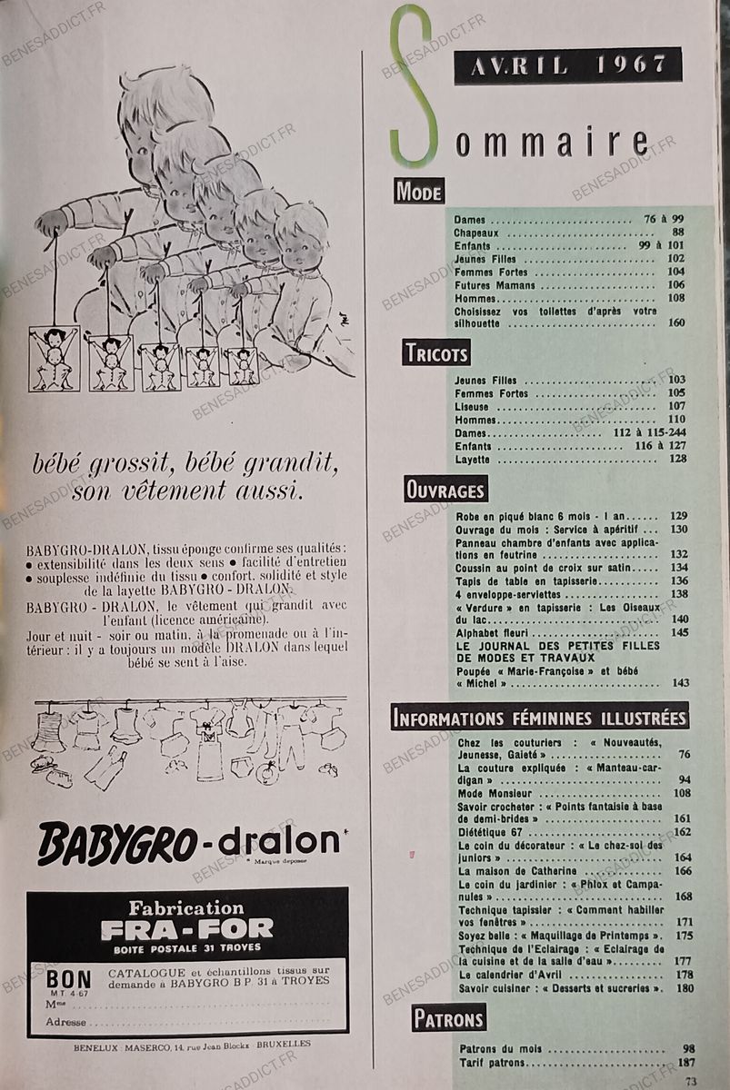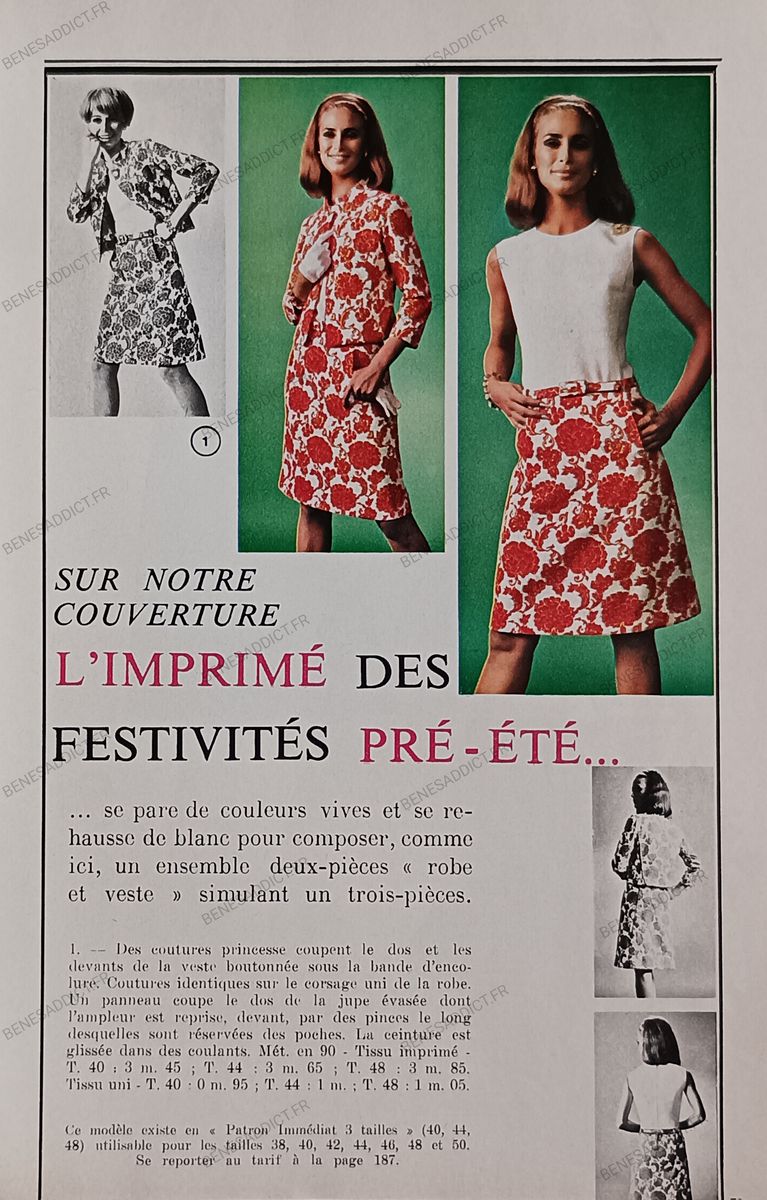 Aujourd’hui, je partage avec vous des morceaux choisis de « Modes et Travaux » datant du mois d’avril 1967 ! Je trouve sa couverture vraiment caractéristique de la fin des années 60 avec les gros imprimés et surtout une bonne humeur !