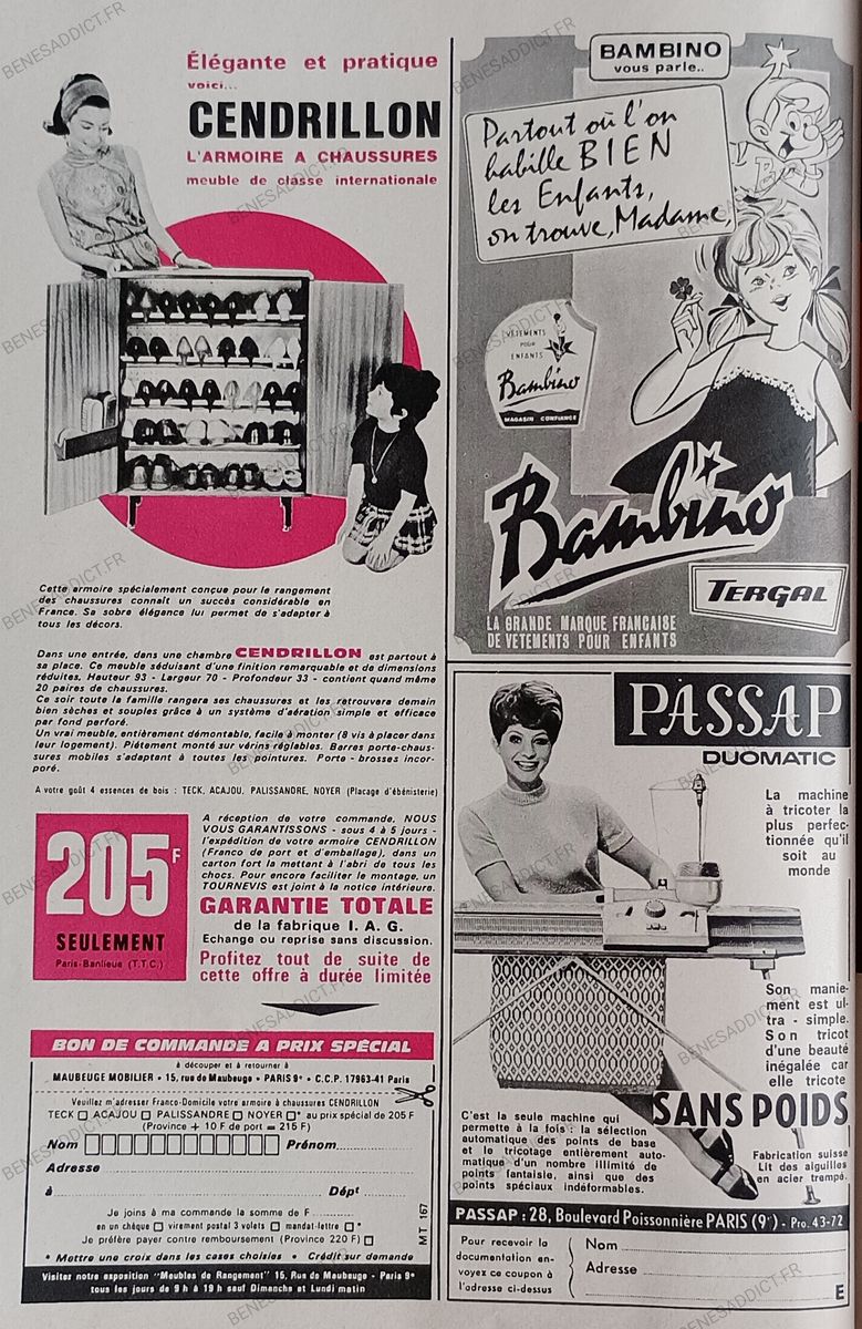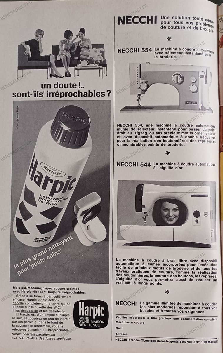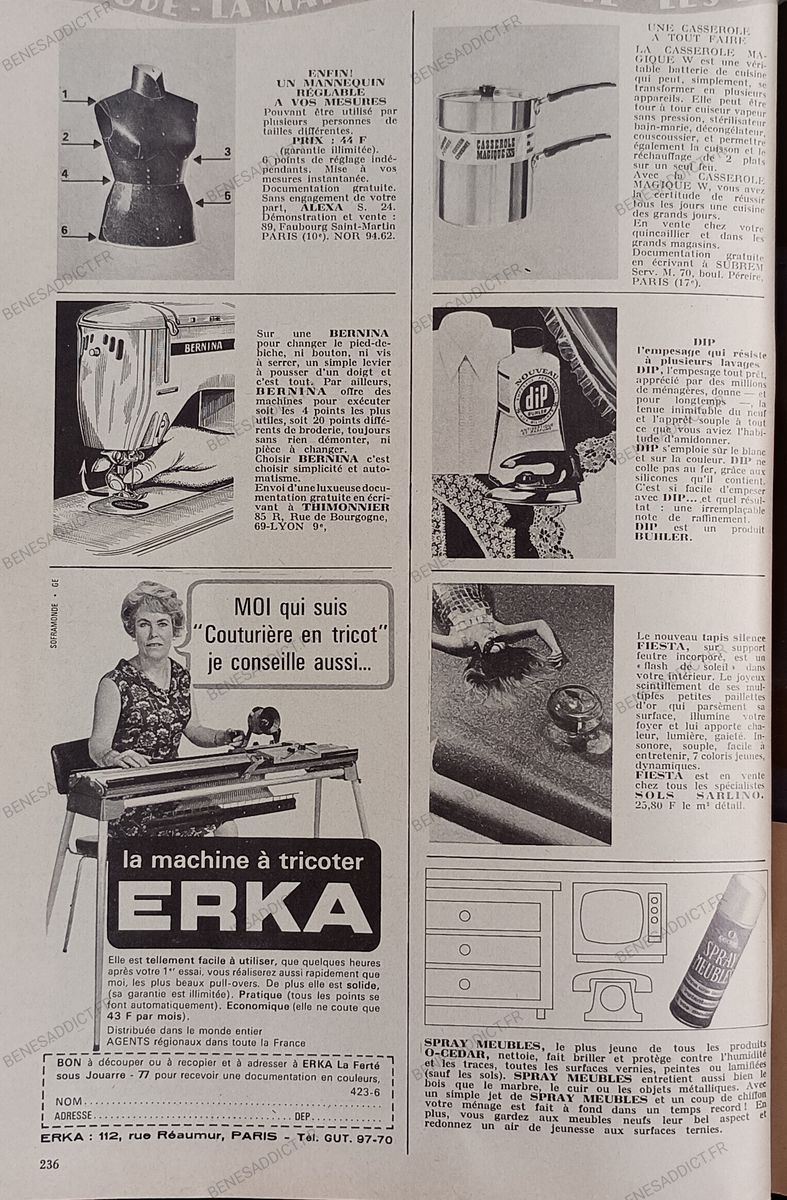 Ce numéro comportait plus de 200 pages avec la moitié pour des publicités… Complètement dédiées à la ménagère et la femme de l’époque. Une réclame vante même les tampons Tampax, fabriqués en France à ce moment-là. Certainement moins remplies de produits toxiques ou non ?