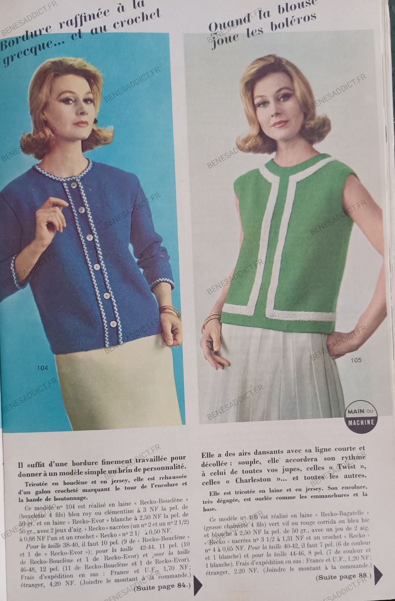 Ma vintagerie du jour nous amène dans les années 60 avec deux numéros de « Modes et Travaux » et ses morceaux choisis. Avec de la couture, mais aussi du tricot et du crochet. Je suis d’ailleurs étonnée de la place du crochet dans cette période.