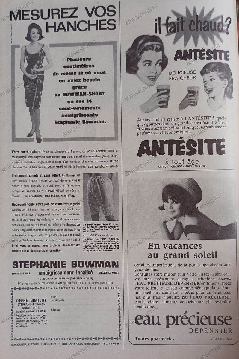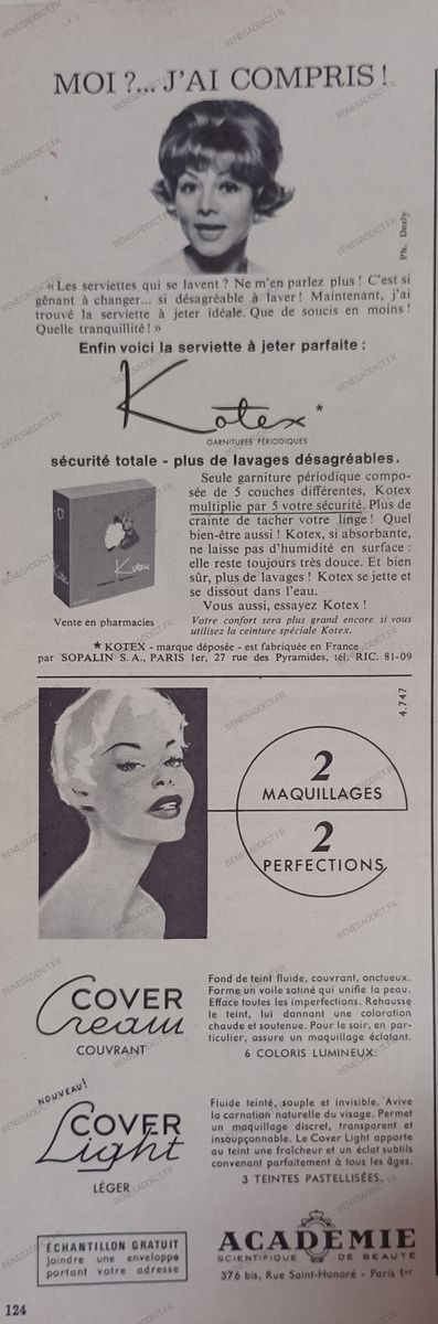 Vous trouverez des réclames de l’époque, et à ma grande surprise sur les tampons et serviettes hygiéniques. On sent tout doucement l’émancipation de la femme s’installer.