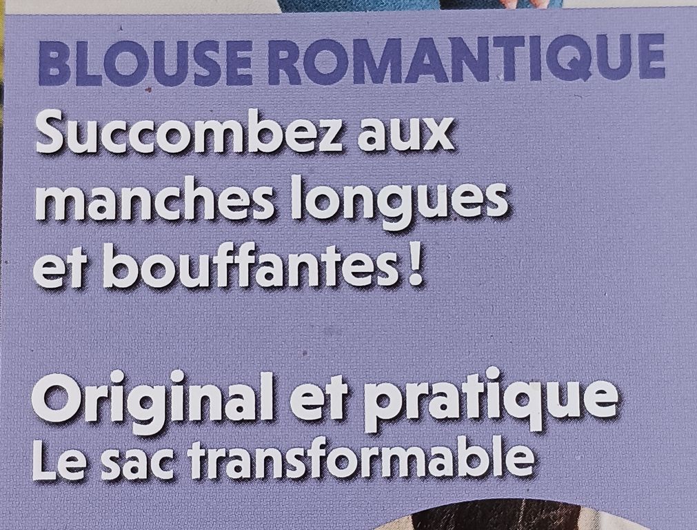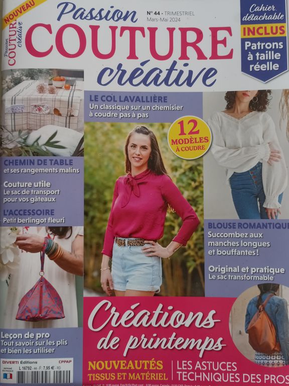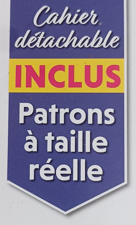 Les patrons à taille réelle sont dans la revue sur une planche agrafée au centre du magazine. Ce rappel est toujours utile en couverture, je parlerai même de transparence. Vous êtes nombreuses à ne pas aimer les patrons à télécharger au format PDF. De plus, ils ont souvent une durée de téléchargement limitée.
