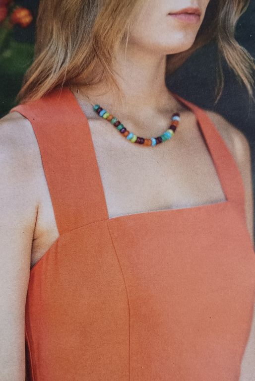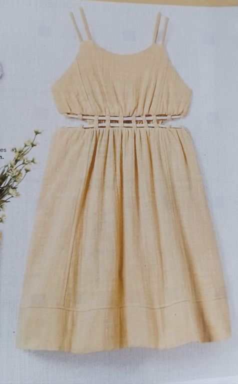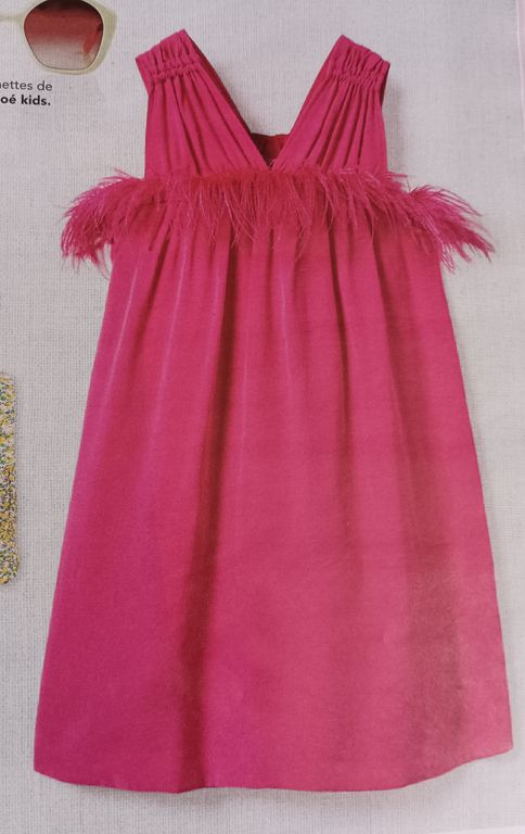 Je suis fan de cette robe pour petite fille. Elle est composée de deux pièces reliées entre elles à l’aide de brides confectionnés dans le même tissu que la robe. Des découpes surpiquées et les doubles bretelles rappellent les brides.