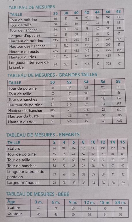 Le tableau des tailles
