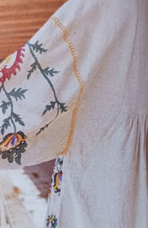 Ici aussi un détail pas ordinaire sur ce pantalon. Le devant et le dos sont croisés sous la taille. En effet, le patron comporte seulement deux pièces, un dos et un devant, sans couture d’entrejambe.