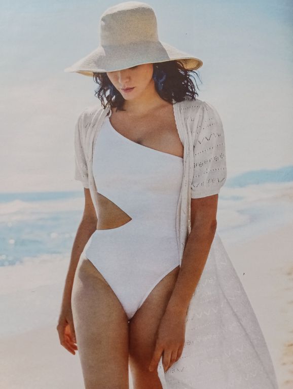 Voici un joli maillot de bain asymétrique avec une ouverture sur le côté et il comporte une seule bretelle. Il me fait penser à un maillot de bain de James Bond Girls.