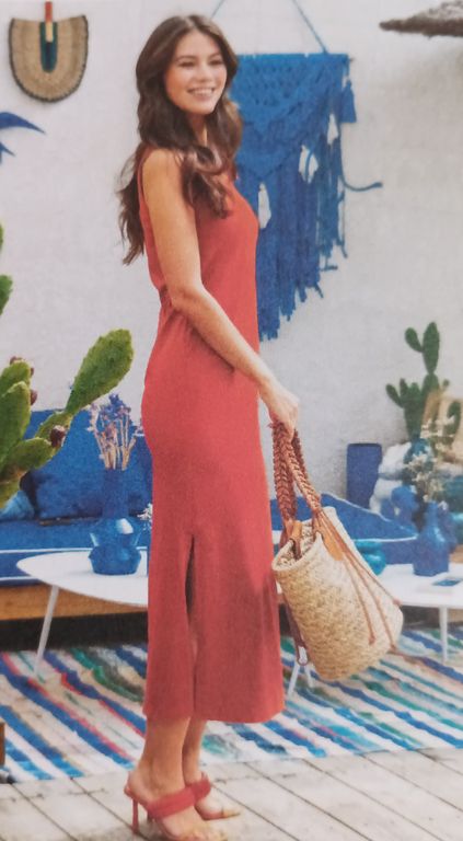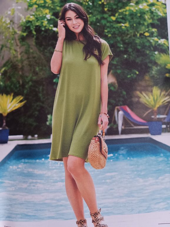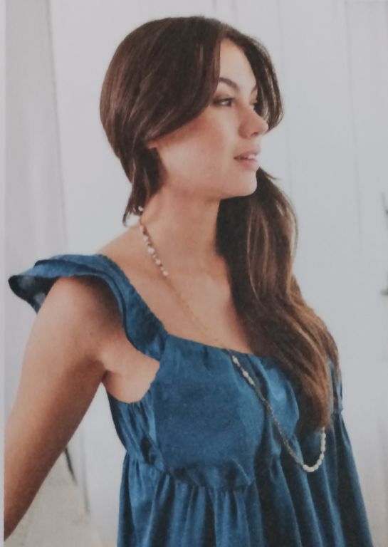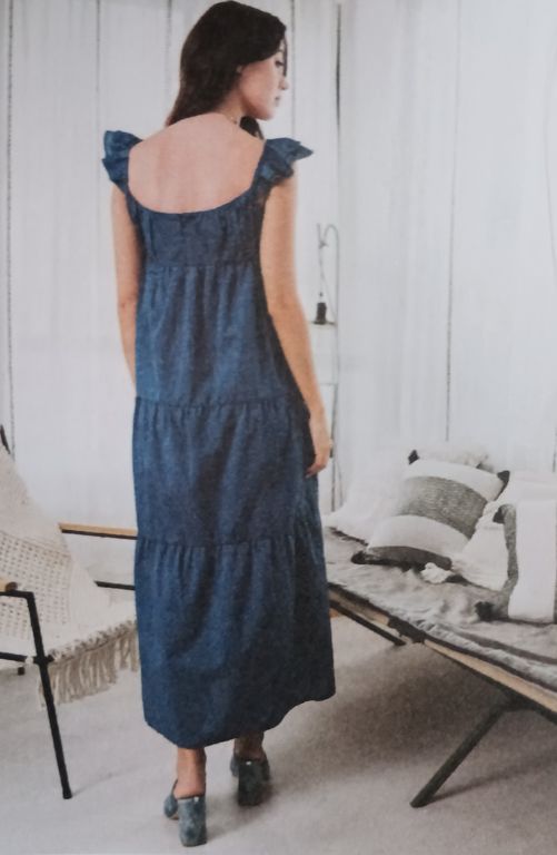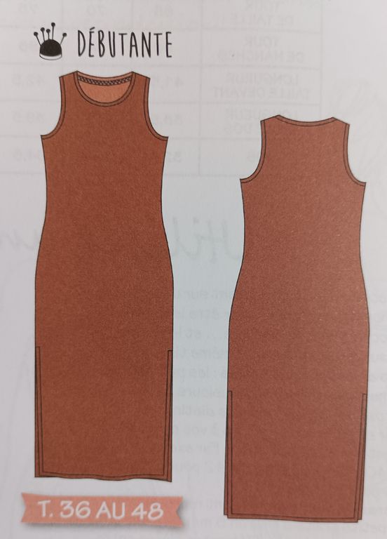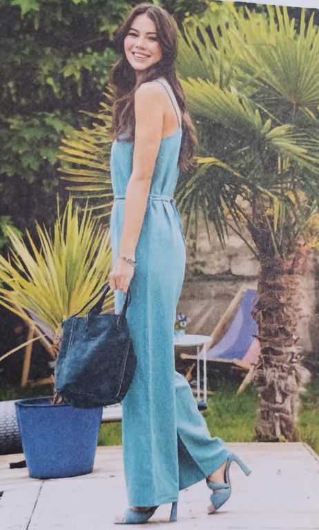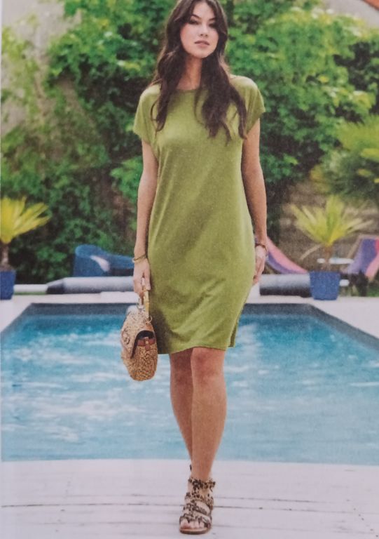 Une robe dans mes coups de cœur, que c’est étonnant ! Bon, il y a plusieurs modèles différents dans la revue donc statistiquement… Celle-ci est l’alliée de celles qui complexent par leur ventre avec la découpe empire sous la poitrine. Elle comporte des bretelles garnies de volants. Possible de la réaliser en version tunique en enlevant les volants froncés de la jupe.