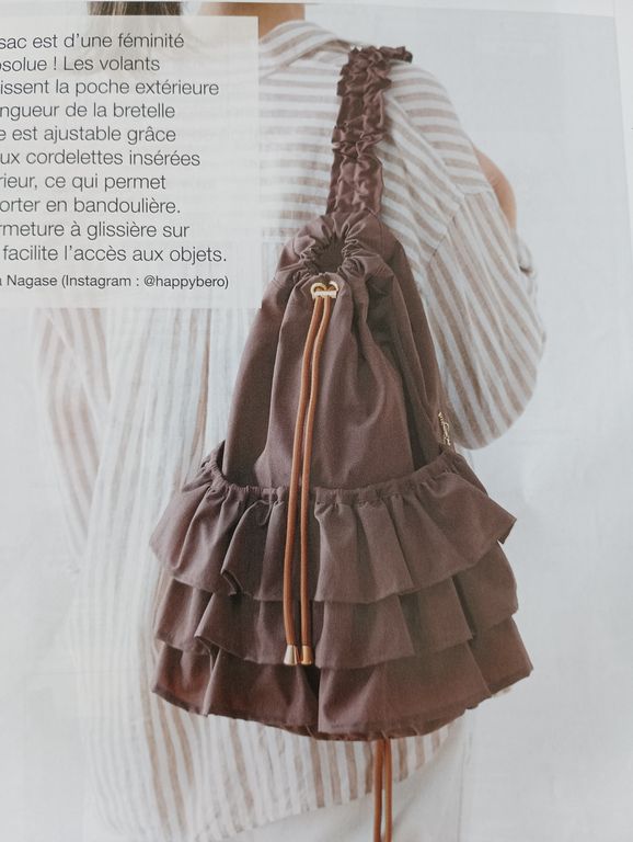 Qui a dit que le sac baluchon était tout sauf élégant ! Ce modèle est une réussite, sa large bretelle est froncée façon ruché. Il se ferme à l’aide d’un lien sous coulisse.