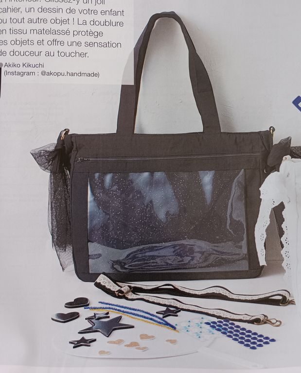 J’adore ce sac avec sa grande poche transparente qui me fait penser à un que j’ai cousu il y a quelques années. Vous trouverez mon Sac Vitrine et son Patron Gratuit et Tuto Évolutif et personnalisable à souhait ! En cliquant sur le lien en bleu.