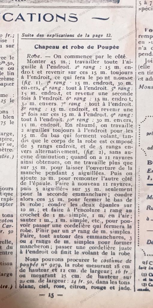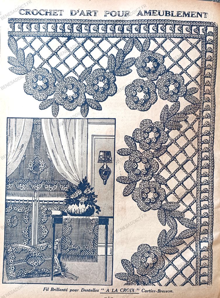 Ce qui est marrant, c’est que nous trouvons plus de crochet que de tricot contrairement à aujourd’hui. Il avait sa place autant dans la garde-robe que dans la décoration d’intérieur. En plus tout le monde savait tricoter ou crocheter. Pas d’oisiveté à faire défiler continuellement un écran.
