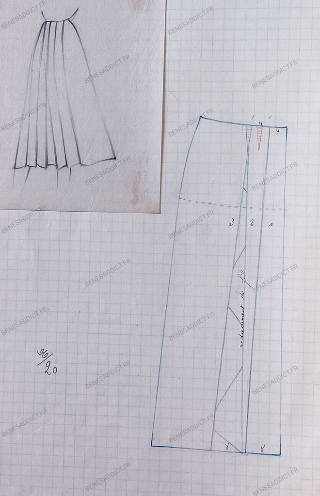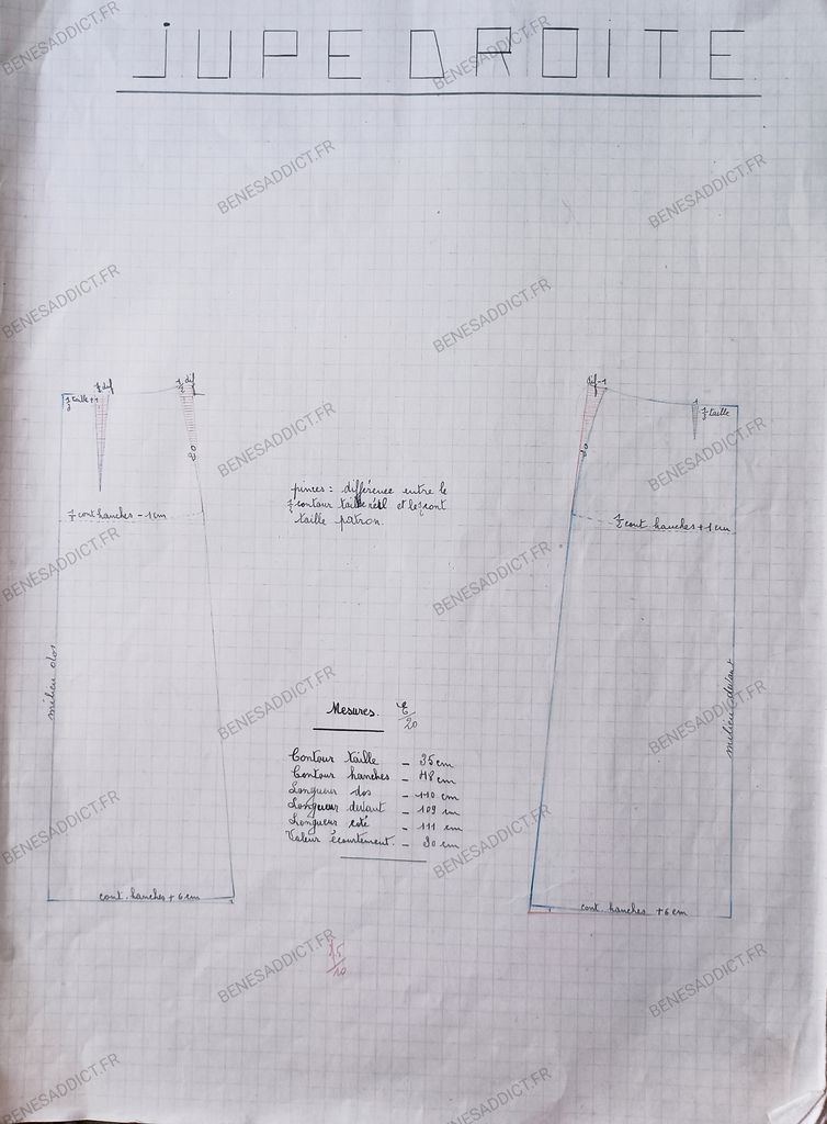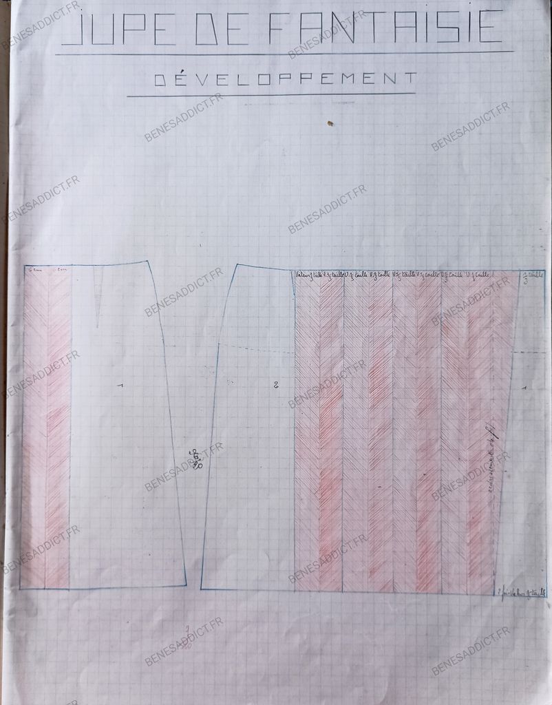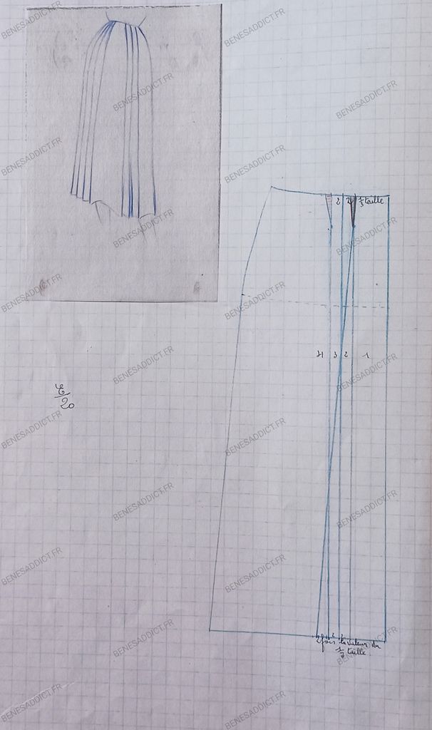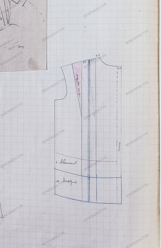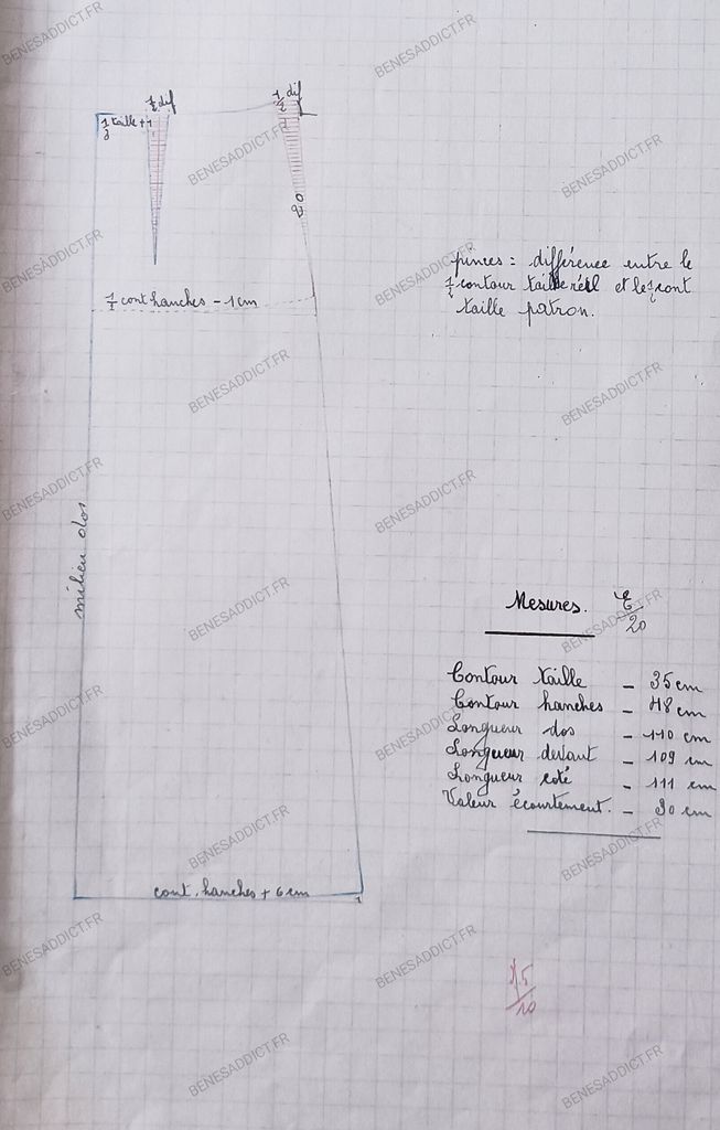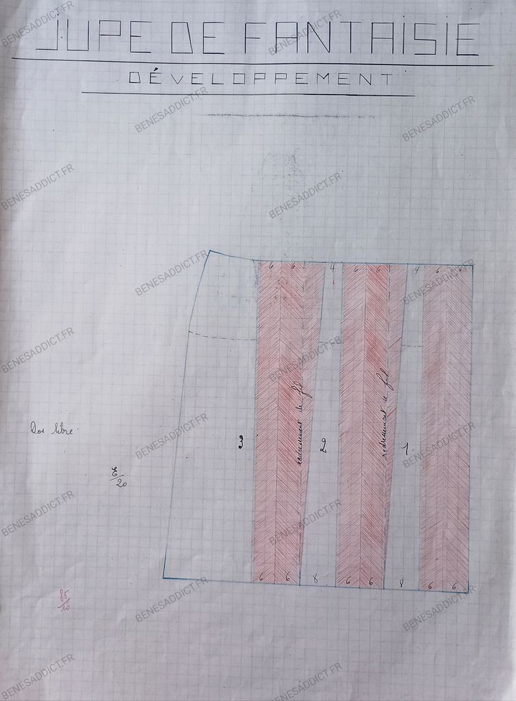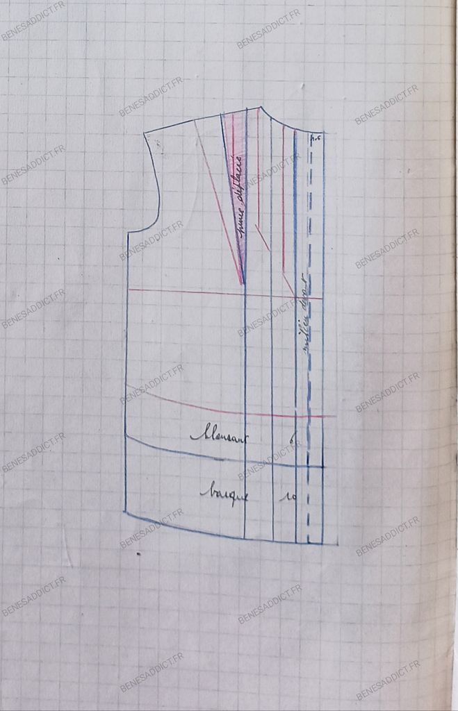 Je pense qu’il date de la fin des années 40. Dites-moi si je me trompe. J’aime beaucoup ce genre de pépites, contrairement à un livre, le temps passé pour réaliser les dessins permettaient de bien s’imprégner des modifications et transformation pour arriver au résultat voulu. On peut y apprendre le tracé du patron de base de la jupe et du corsage, de ces deux bases, on peut créer une infinité de patrons de jupes, corsages, mais aussi vestes et robes.