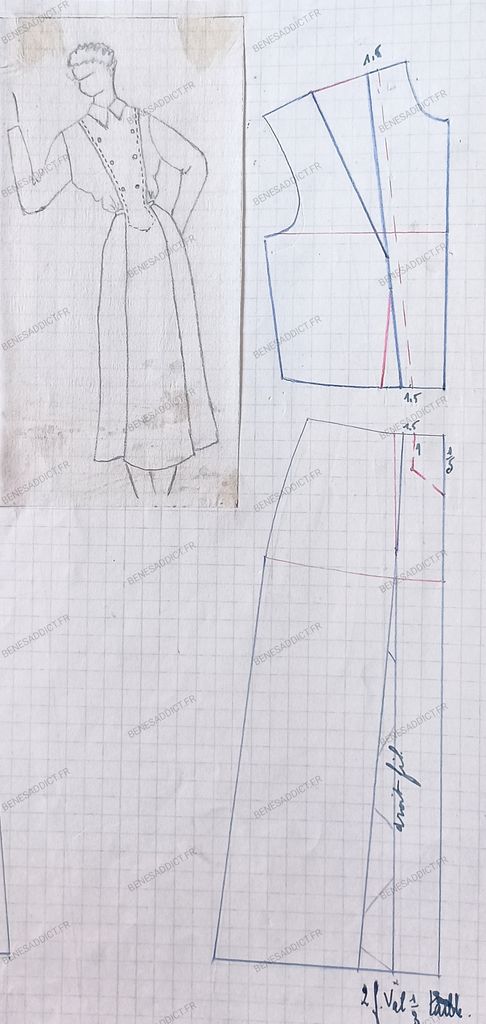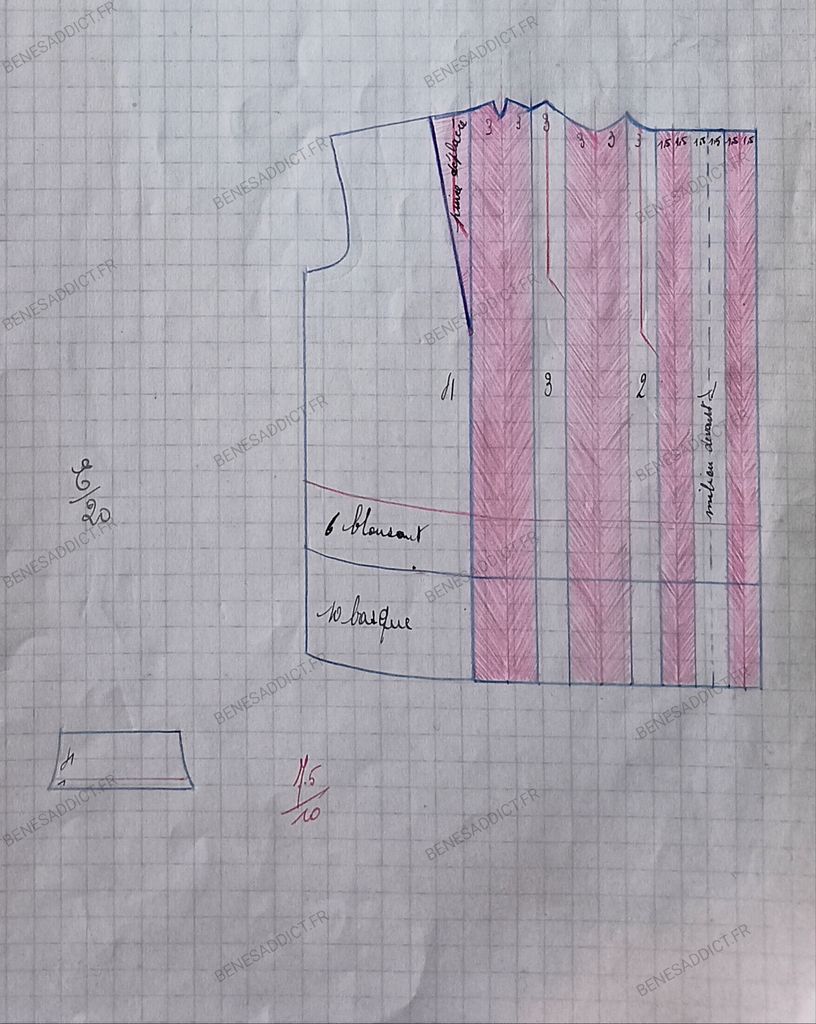 C’est toujours intéressant, je trouve. J’ai encore un deuxième cahier de coupe à plat de la même personne avec le placement sur le tissu, que je scannerai la semaine prochaine.