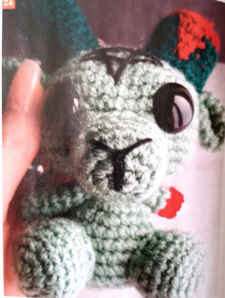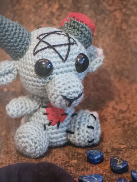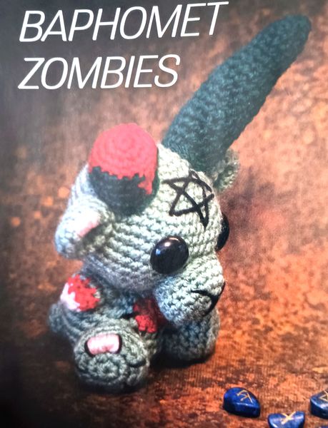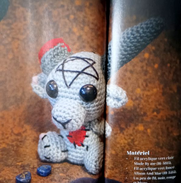 J’adore ce petit Baphomet en version zombie. Il est tout mignon, en version amigurumi. Une des cornes est coupée avec de la laine rouge faisant office de sang. Je sais qu’il va choquer certains, mais pas grave. Mon mari est joueurs de Jeux de Rôles, donc il connaissait ce « monstre ».