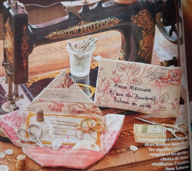 Voilà pourquoi j’ai craqué sur ce numéro ! La présence d’une jolie travailleuse en bois relookée en rose, et un imprimé façon patchwork.