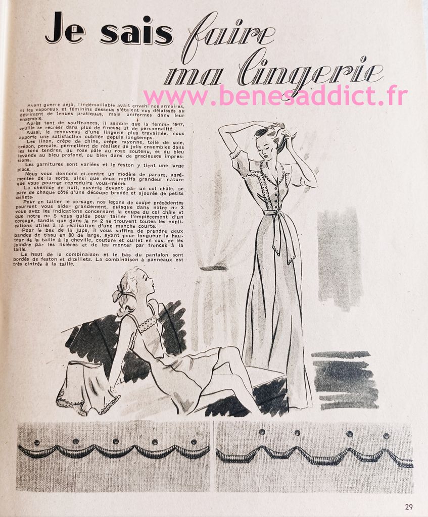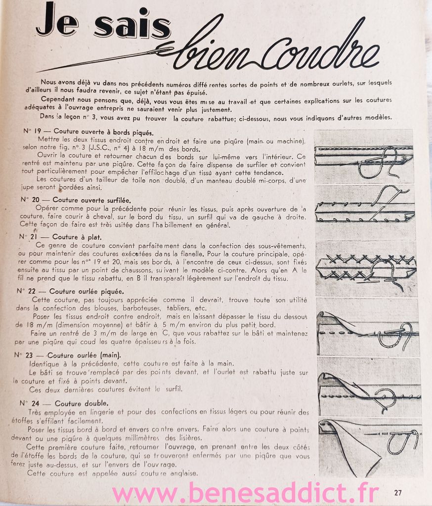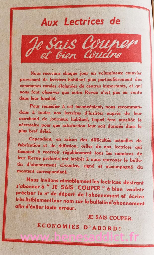 Il s’agit de la revue « Je Sais Couper et Bien Coudre », je possède les 50 premiers numéros à quelques exceptions près. Vous trouverez dans l’article ci-dessous le contenu de plusieurs numéros, et si le cœur vous en dit en bas d’article le lien fléchés pour télécharger directement le PDF sans contreparties.