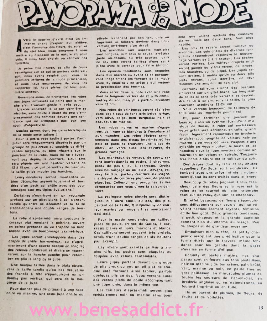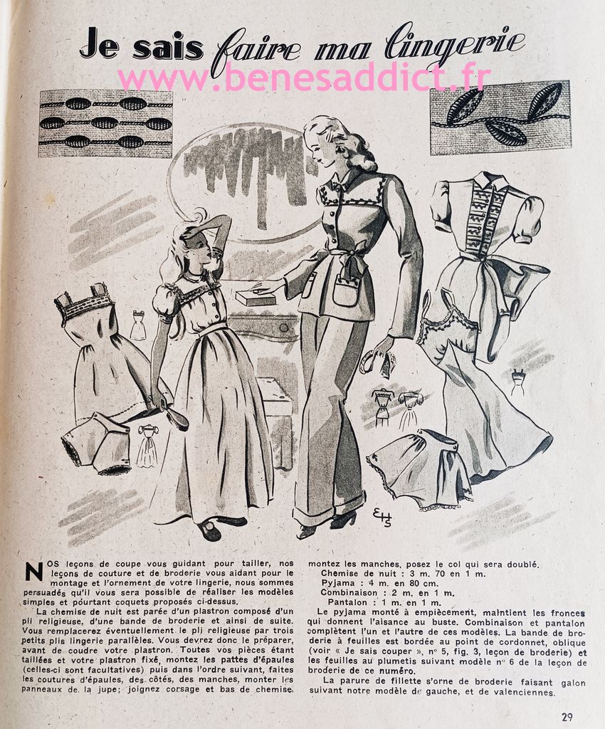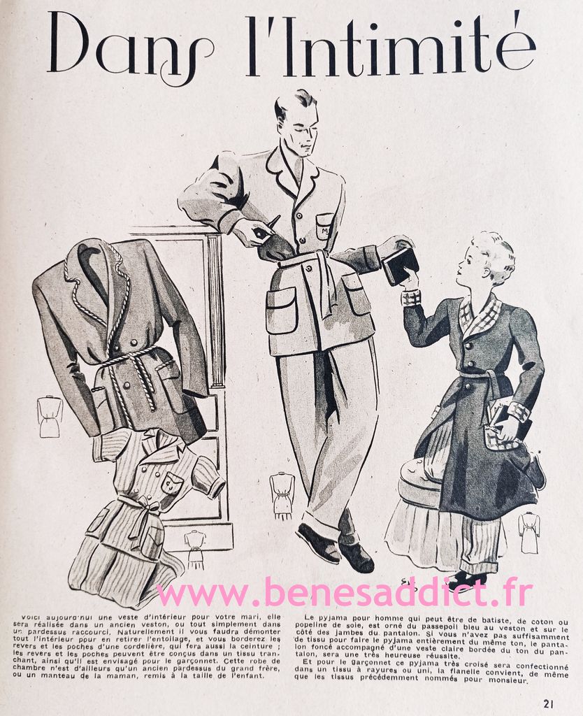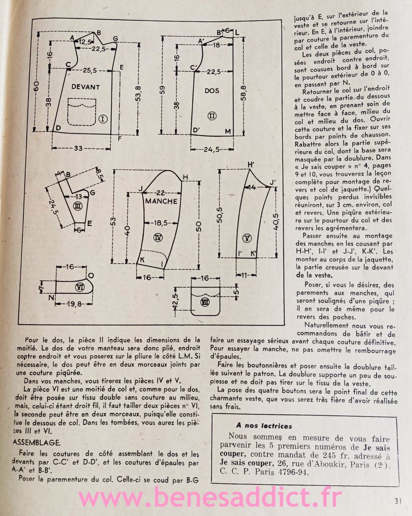 C’était une revue complète, qui enseignait l’art de la coupe à plat. Avec chaque mois un ou plusieurs modèles à reproduire en fonction de ses mensurations. Mais ce n’est pas tout, on pouvait aussi trouver des cours pour le tricot, ou embellir sa maison par exemple en confectionnant sa décoration.
