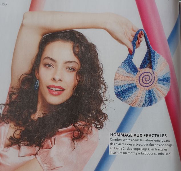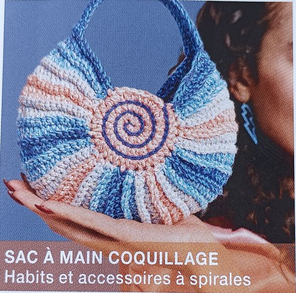 Les spirales crochetées sont mises en avant sur un sac à main en forme de coquillage. Vous les retrouverez aussi dans l’habillement avec de belles petites pépites.