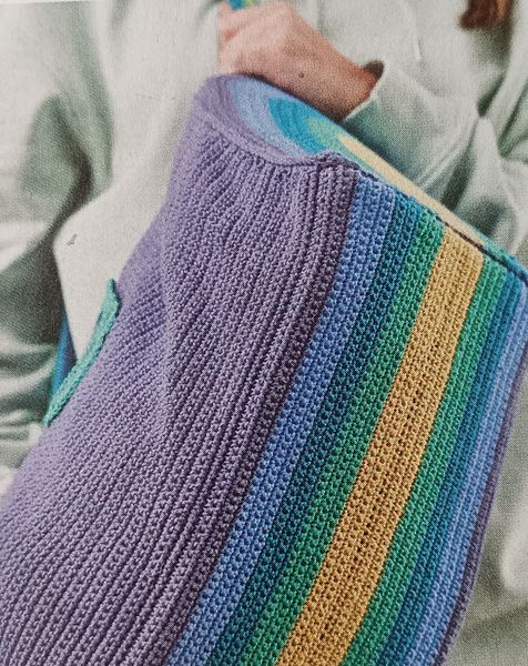 Je dois avouer qu’il ne me serait jamais venu à l’idée de crocheter un sac de sport. Mais ce modèle est superbe ! Avec son dégradé de couleurs sur le côté et le fond. On le retrouve aussi dans la sangle. Le souci du détail se retrouve dans le porte-étiquette.