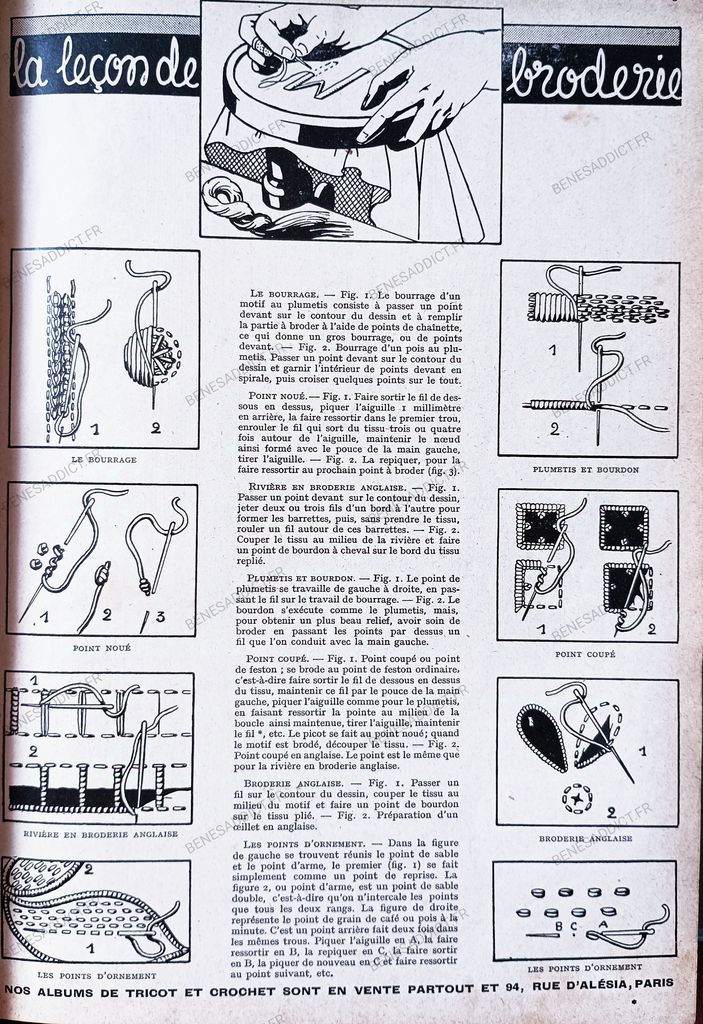Bonjour, bonjour les créatives ! Aujourd’hui, nous partons dans les années 30 avec de nombreux ouvrages de dames. Ils étaient rassemblés par thème dans des revues hors série. Ici, je partage avec vous la partie broderie, avec des modèles de points et leur utilité. Notez que le thème de ce numéro est intitulé ouvrages de dames. Tout le savoir que les femmes de cette époque avaient dans les mains est tout simplement hallucinant.