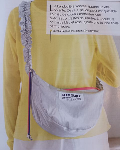 Sac banane ou non ? Plutôt un sac demi-lune à porter en bandoulière. J’aime beaucoup le détail qui fait toute la différence, sa sangle, qui est garnie de deux élastiques colorés, ce qui permet d’ajuster, mais aussi de froncer cette dernière.