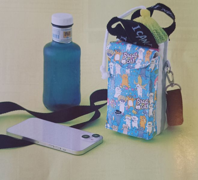Voilà le range téléphone qui me fait aussi de l’œil. Il comporte une poche pour mettre une bouteille. Le mélange des imprimés et des matières apporte beaucoup un côté années 80/90 que j’aime beaucoup !