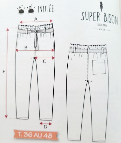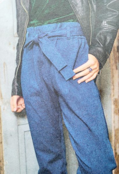 Vous le savez, je ne jure que pas les pantalons taille élastique, et nous en avons un dans ce hors-série couture. Ici, c’est même ceinture élastique façon paper-bag et ceinture à nouer. Le pantalon est proche du corps sans être moulant pour rester dans le confort maximum.