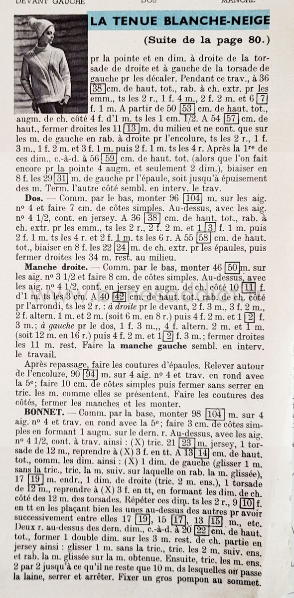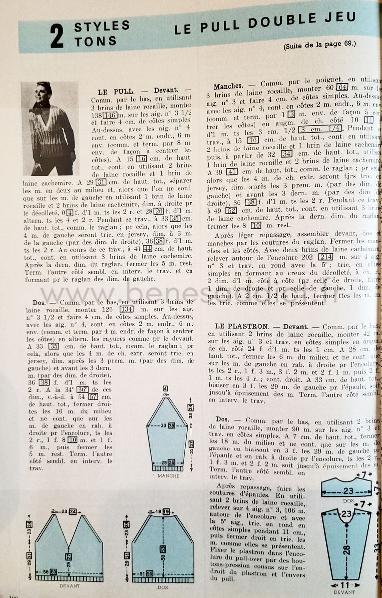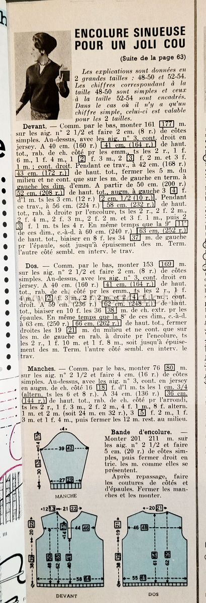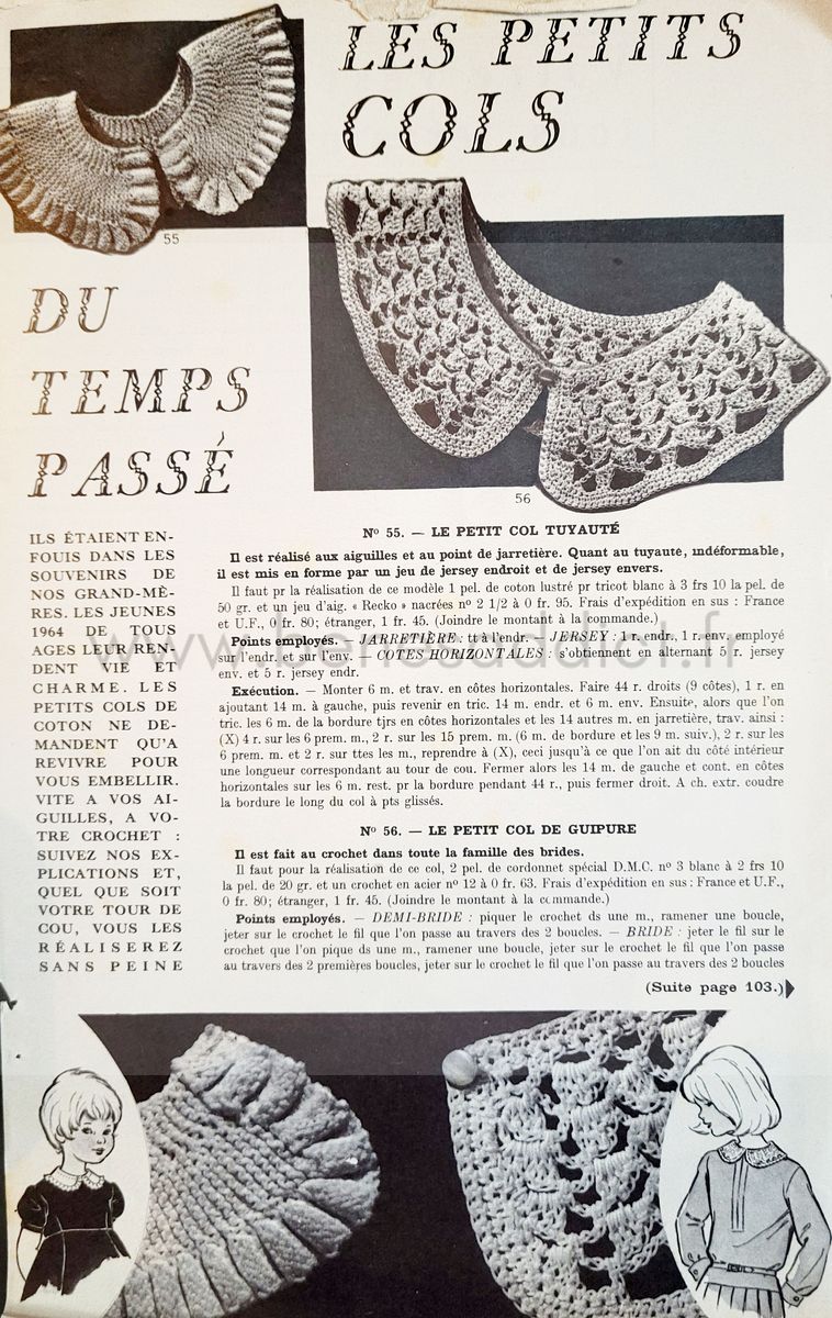 Je pense qu’ils sont tirés de revues Modes et Travaux de l’époque. C’est toujours intéressant de feuilleter et de photographier ces pochettes de morceaux choisis. Épinglés ensemble et souvent annotés. Il m’en reste encore beaucoup à compiler, un peu orientées broderies, mais toujours loisirs créatifs. Je peux comprendre que le choix était de conserver le plus important dans les revues de ces années. J’imagine que le reste des ouvrages ont malheureusement fini au feu comme fréquemment. Enfant, nous avions dans notre immeuble un poêle à charbon, et tout y passait, pas de déchets… Mais des conduits particulièrement encrassé…
