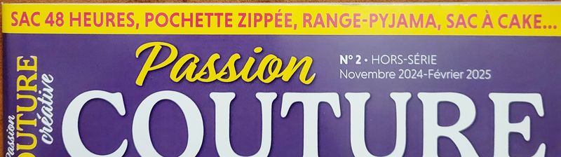 Dans ce numéro, le bandeau nous résumant le contenu de la revue se trouve en haut de la couverture. Nous apprenons ainsi que nous aurons, un range pyjama, mais aussi un sac weekend, ou un sac à cake, etc. Au passage, je suis à jour puisque c’est le numéro 2, hors série pour les mois de novembre 2024 à février 2025.